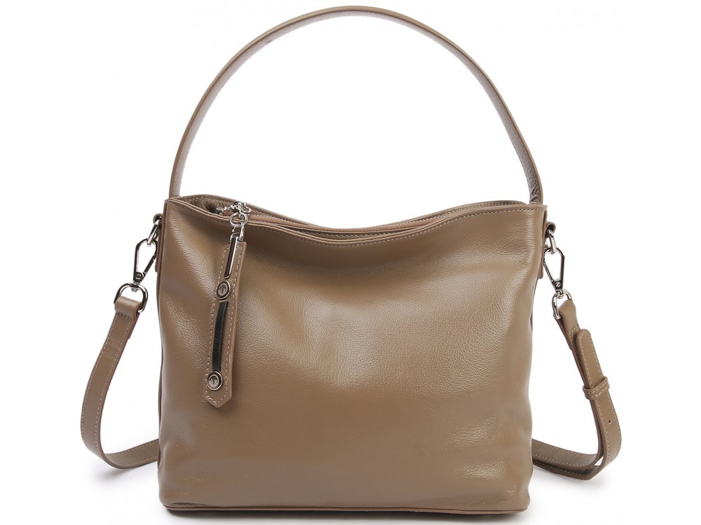 Размер 36/26/16 Вес товара без упаковки 0,8 Состав натуральная кожа Вид застежки молния Сумка женская из натуральной кожи на двух длинных ручках, благодаря которым можно носить сумку в руках и на плеч... Показать описаниее. Внутри одно основное отделение с дополнительными карманами для мелочей. Сзади сумки дополнительный карман.