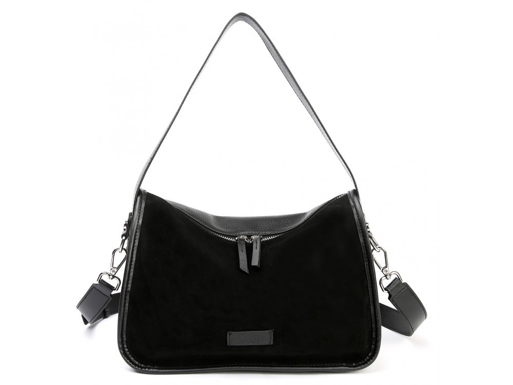Размер: 36/11,5/15 Вес товара без упаковки Состав: Натуральная кожа/замша натуральная Вид застежки: молния Описание: Сумка женская из натуральной кожи и замши с регулиремой ручкой, с помощью которой&n... Показать описаниеbsp;можно носить сумку как на плече, так и в руках. Внури сумки одно основное отделение с дополнительными карманами для мелочей.