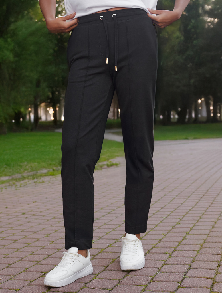 Брюки джоггеры на резинке с застроченными стрелками из эластичного футера двухниткиВопросы по товару