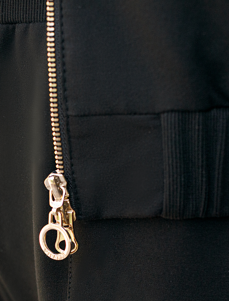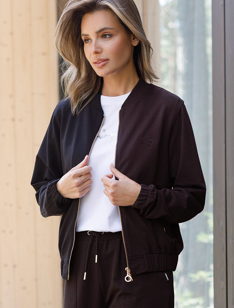 Состав: 95%Хлопок 5%ПУ Плотность: 240 Г/м2 Бомбер черного цвета среднего объема на молнии с карманами из премиального футера двухнитки — это стильный выбор для ценительниц минимализма и комфорта. Нату... Показать описаниеральный состав обеспечивает дышащий эффект, мягкость и приятные тактильные ощущения, Эластичный материал позволяет свободно двигаться без лишнего стеснения, а также отлично сохраняет форму даже после длительного ношения. Манжеты на рукавах и резинка по низу обеспечивают надежную посадку, сохраняя тепло в прохладную погоду. Повседневный бомбер отличается аккуратным силуэтом без лишнего объема и универсальной длиной, которая идеально подходит для повседневного и спортивного образа. Прорезные карманы по бокам добавляют функциональности, сохраняя при этом стильный внешний вид. Бомбер из футера украшен деликатной вышивкой в виде эмблемы бренда, которая придает особый шарм и подчеркивает индивидуальность владелицы. Такой изысканный элемент декора гармонично сочетается с лаконичным дизайном, отвечая современным тенденциям моды. Так же на одном из карманов расположен небольшой металлический логотип бренда. Представленная размерная линейка позволяет подобрать оптимальный вариант для любой фигуры и размера, на маленький или плюс сайз, обеспечивая свободу движений без компромиссов по стилю. Этот легкий бомбер станет отличным дополнением к базовому гардеробу, сочетая практичность с элегантностью.