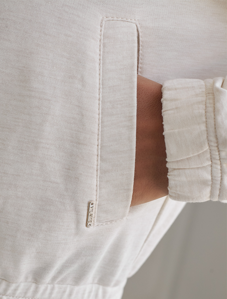 Состав: 80%Хлопок 20%ПЭ Плотность: 240 Г/м2 Свободный бомбер бежевого цвета с эффектом меланж на молнии выполнен из премиального футера трехнитки без начеса, обеспечивает мягкость и комфорт при носке.... Показать описание Натуральный состав обеспечивает дышащий эффект, мягкость и приятные тактильные ощущения, Эластичный материал позволяет свободно двигаться без лишнего стеснения, а также отлично сохраняет форму даже после длительного ношения. Высокий воротник, манжеты на рукавах и резинка по низу обеспечивают надежную посадку, сохраняя тепло в прохладную погоду. Оверсайз бомбер отличается спущенной линией плеч и универсальной длиной, которая идеально подходит для повседневного и спортивного образа. Прорезные карманы по бокам добавляют функциональности, сохраняя при этом стильный внешний вид. Бомбер из футера украшен деликатной вышивкой в виде эмблемы бренда, которая придает особый шарм и подчеркивает индивидуальность владелицы. Такой изысканный элемент декора гармонично сочетается с лаконичным дизайном, отвечая современным тенденциям моды. Так же на одном из карманов расположен небольшой металлический логотип бренда. Представленная размерная линейка позволяет подобрать оптимальный вариант для любой фигуры и размера, на маленький или плюс сайз, обеспечивая свободу движений без компромиссов по стилю. Этот легкий бомбер станет отличным дополнением к базовому гардеробу, сочетая практичность с элегантностью.