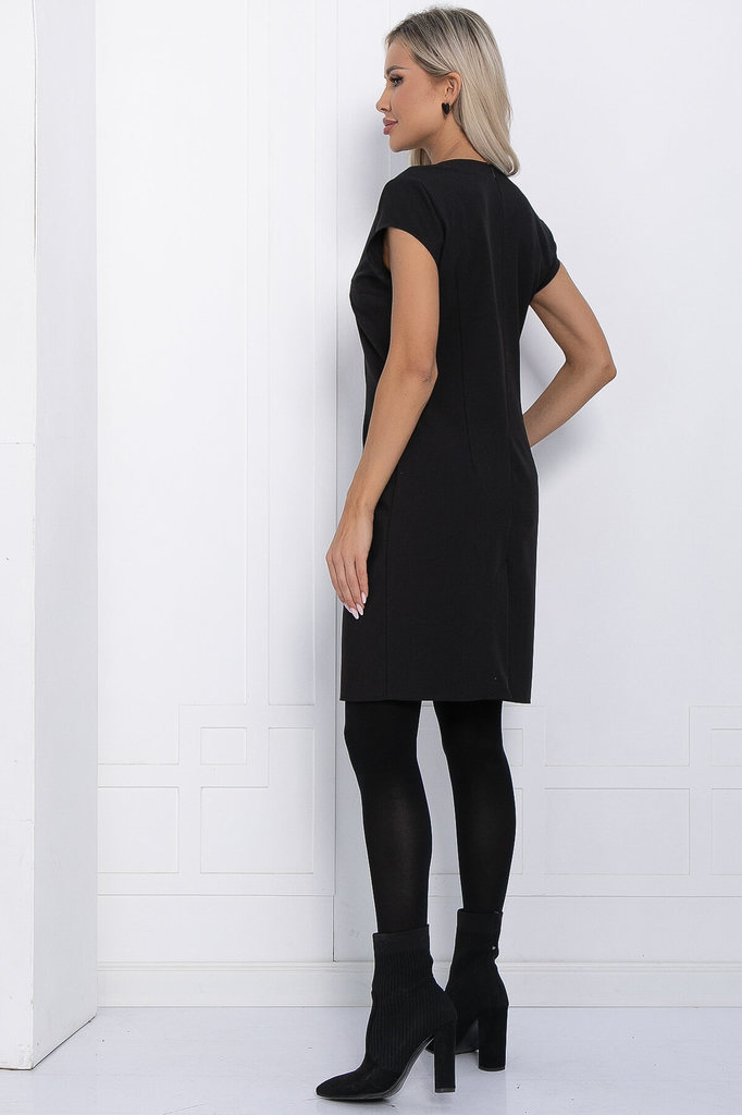 Артикул: П12227-2. Тип ткани: смесовая. Состав: 65% полиэстер, 30% вискоза, 5% эластан Материал: костюмная. Цвет: чёрный. Принт: отсутствует. Длина: мини. Вид застежки: сзади потайная м... Показать описаниеолния. Силуэт: полуприлегающий. Карманы: отсутствуют. Подкладка: отсутствует. Декоративные элементы: отсутствуют. Длина по спинке от верхней точки плеча: 44-48/ 92 см, 50-52/ 93 см, 54/ 94 см. Размер изделия на модели: 44 Рост модели: 168 см. Это маленькое чёрное платье с коротким рукавом и длиной мини станет вашим воплощением элегантности и сексуальности. V-образный вырез горловины подчеркивает зону декольте, придавая вашему образу изысканность. В этом платье вы будете чувствовать себя прекрасно и привлекательно. Уход за изделием: ручная стирка до 30 градусов; нельзя отбеливать; отжим запрещён; гладить при t не более 110 С; гладить с изнанки. Внимание! Рекомендуем ориентироваться на размерную сетку и выбирать свой привычный размер, согласно размерной таблице. *Допуск отклонения длины при массовом производстве 1-3 см является нормой.