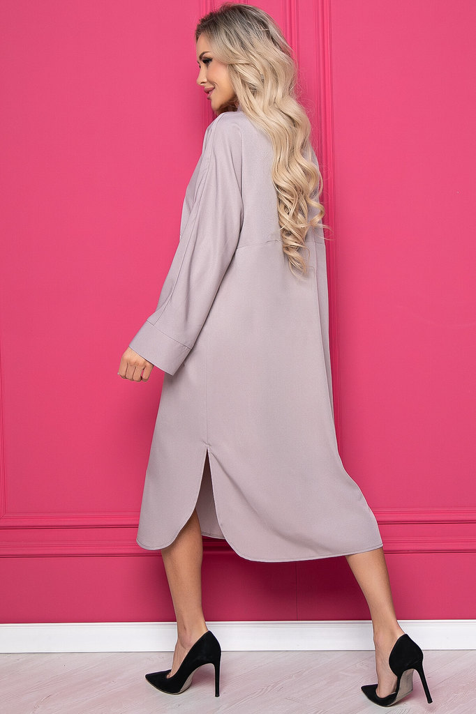 Артикул: П8673. Ткань: плательная "твил". Состав: 95% п/э, 5% эластан. Цвет: какао. Вид застежки: кнопки по переду. Силуэт: прямой. Oversize. Подкладка: отсутствует. Карманы: отсутствую... Показать описаниет. Тип горловины: стойка. Длина изделия по спинке: 46/ 112 см, 48/ 113 см, 50/ 113 см, 52/ 114 см, 54/ 115 см. Рост модели: 168 см. Для ценителей комфортных и модных образов наша новинка - платье свободного кроя из лёгкой, приятной к телу ткани. Данная модель выполнена в рубашечном стиле. Лаконичное платье длиной по колено – идеальный вариант для повседневных образов с лодочками или кедами. По бокам есть разрезы. Уход за изделием: бережная стирка до 30 градусов; нельзя отбеливать; деликатный отжим; гладить при t не более 110 С; гладить с изнанки. *Допуск отклонения длины при массовом производстве 1-3 см является нормой.