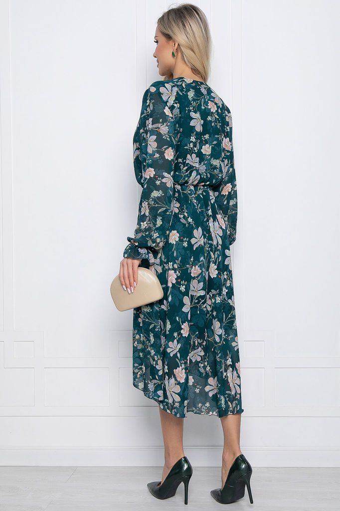 Артикул: П10182. Ткань: шифон. Состав: 100% п/э. Цвет: изумрудный. Вид застежки: без застёжки. Силуэт: А-силуэт. Карманы: отсутствуют. Тип горловины: имитация запаха. Подкладка: есть. Д... Показать описаниелина изделия по спинке: 44-48/ 110 см, 50-54/ 111 см. Рост модели: 168 см. Невероятно стильное платье не оставит вас равнодушным! Оно собрало все элементы женственности. Изделие украшает V-образный вырез с имитацией запаха. Рукав длинный, по низу на резинке с рюшей. В комплект входит пояс из основной ткани, который отлично подчеркнет линию талии! Юбка платья с запахом. Платье на подкладке. Уход за изделием: ручная стирка до 30 градусов; нельзя отбеливать; деликатный отжим; гладить при t не более 110 С; гладить с изнанки. *Допуск отклонения длины при массовом производстве 1-3 см является нормой