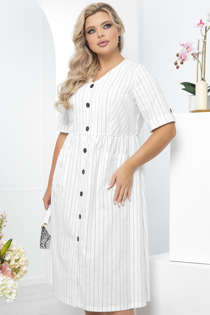 Артикул: П5556. Ткань: хлопок. Состав: 95% хлопок, 5% эластан. Цвет: белый. Вид застежки: пуговицы. Силуэт: полуприталенный. Карманы: есть. Тип горловины: V-образный. Длина изделия по спинке... Показать описание: 46/ 115 см, 48/ 116 см, 50/ 118 см, 52/ 120 см. Рост модели: 170 см. Универсальное платье не оставит Вас без внимания окружающих. Такое платье будет отлично смотреться как на торжественном мероприятии, так и в повседневной жизни. Рукав втачной, с декоративной патой. В комплект входит пояс из экокожи. Уход за изделием: бережная стирка до 30 градусов; нельзя отбеливать; деликатный отжим; гладить при t не более 110 С; гладить с изнанки. *Допуск отклонения длины при массовом производстве 1-3 см является нормой.