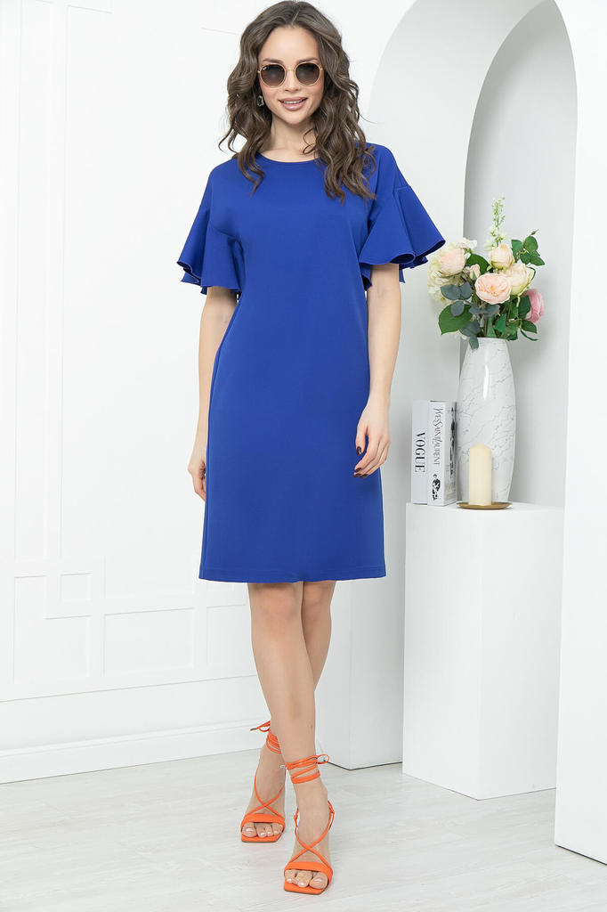 Артикул: П5589. Ткань: плательная "Барби". Состав: 95% п/э, 5% эластан. Цвет: сапфир. Вид застежки: отсутствует. Силуэт: прямой. Карманы: отсутствуют. Тип горловины: округлый. Длина изд... Показать описаниеелия по спинке: 46/ 96 см, 48/ 97 см, 50/ 98 см, 52/ 99 см. Рост модели: 175 см. Элегантное платье насыщенного оттенка не оставит Вас без внимания окружающих. Изысканность образу придают акцентные укороченные рукава по форме "волан". Добавив аксессуаров, платье будет отлично смотреться на любом торжественном мероприятии. Уход за изделием: бережная стирка до 30 градусов; нельзя отбеливать; деликатный отжим; гладить при t не более 110 С; гладить с изнанки. *Допуск отклонения длины при массовом производстве 1-3 см является нормой.