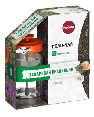 Иван-чай листовой, Утренняя роса 100г + Френч пресс черн. 350мл  Айдиго
