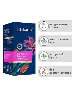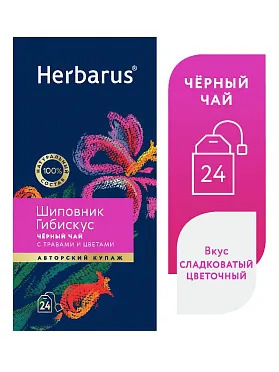 Чай черный с добавками Herbarus Шиповник Гибискус (24 пак)Чай черный с добавками Herbarus Шиповник Гибискус (24 пак)