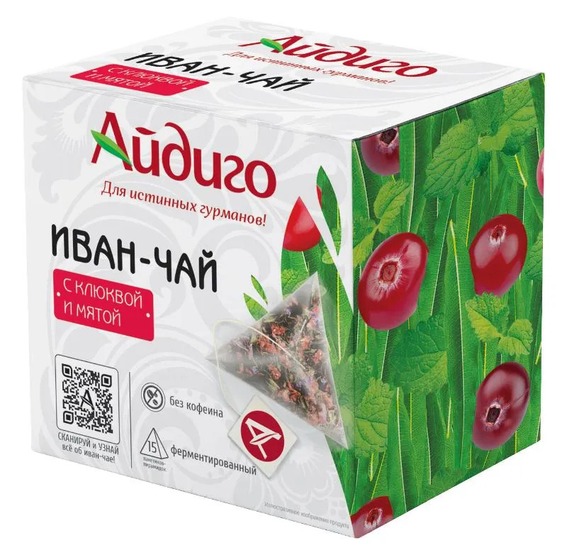 Иван-чай в пирамидках Клюква и мята 15 пак.-30 гр., Айдиго