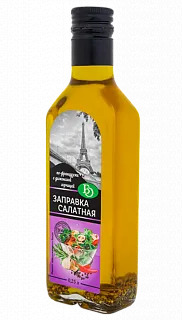 Ароматная заправка из смеси подсолнечного и оливкового масла Extra Virgin, настоянного на смеси специй (чеснок, базилик) и вяленых томатов.