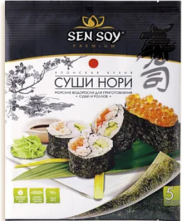 Морские водоросли Sen Soy Нори 5 листов. Отвечают самым строгим требованиям японских суши-мастеров. Их тонкая, но прочная текстура, насыщенный морской аромат и деликатный вкус делают эти водоросли иде... Показать описаниеальным выбором для приготовления аутентичных суши и роллов в домашних условиях. Каждый лист тщательно отобран и обжарен по традиционной технологии, что обеспечивает ему хрустящую структуру и ярко выраженный вкус умами. Sen Soy Нори не просто ингредиент – это ключ к созданию кулинарного шедевра. Благодаря своей эластичности, листы легко скручиваются, не ломаются и надежно удерживают начинку, позволяя даже начинающим кулинарам добиться профессионального результата. Они также идеально подходят для приготовления онигири, японских рисовых шариков, и других азиатских блюд. Выбирая Sen Soy Нори, вы выбираете качество и аутентичность. Это не просто продукт, это часть японской кулинарной традиции, воплощенная в каждом листе. Их глубокий, морской вкус обогатит любое блюдо, добавив ему нотку изысканности и утонченности.