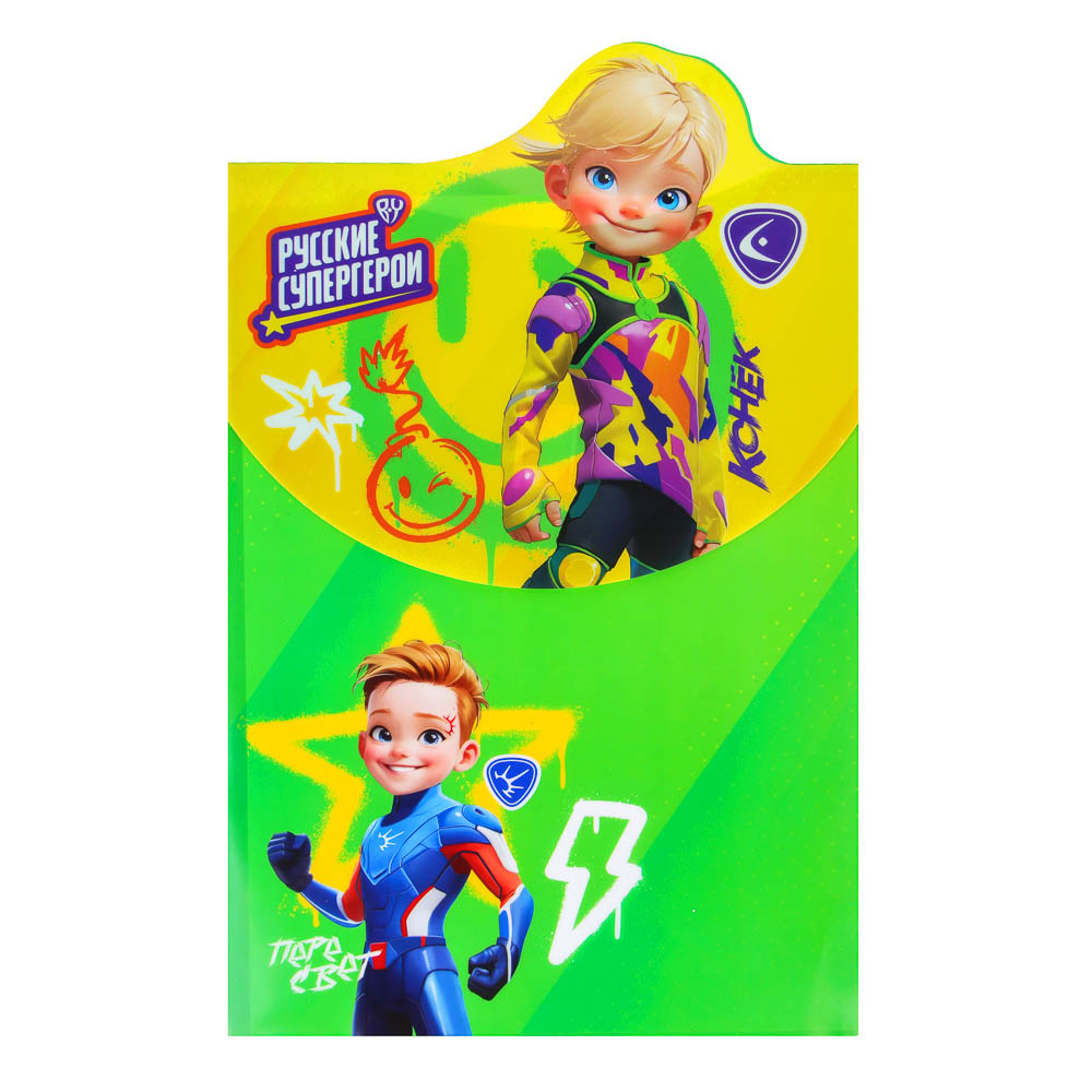 BY Русские Супергерои Папка-конверт на липучке, 31x22см, д/A4, клапан, пл.0,18мм, "Мальчики Джуниор"