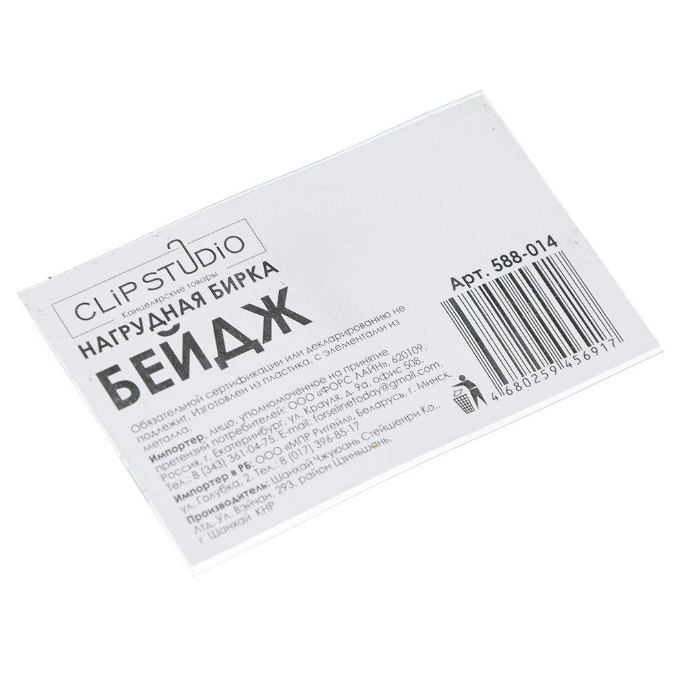 ClipStudio Бейдж с булавкой и клипом (идентификатор) 60*90 мм прозрачный