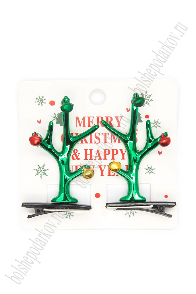 Новогодние заколки "Рожки" (1 пара) SF-7562, зеленый №10