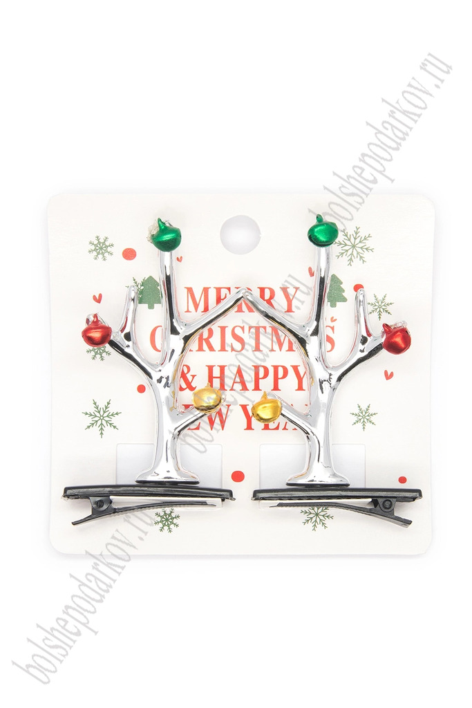 Новогодние заколки "Рожки" (1 пара) SF-7562, серебро №9