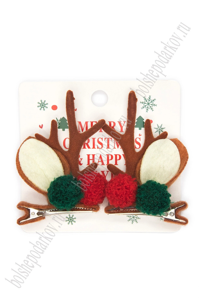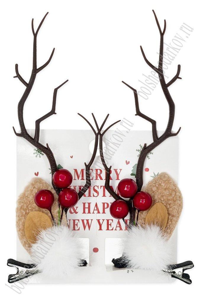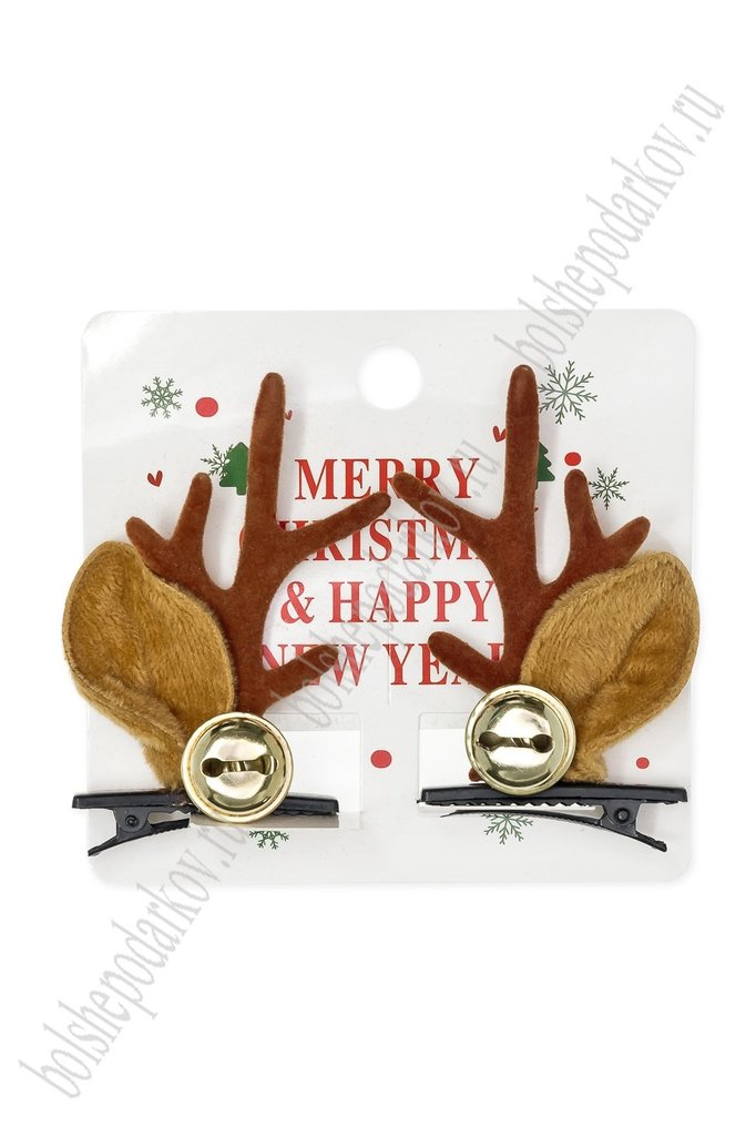 Новогодние заколки "Рожки" (1 пара) SF-7562, коричневый №8