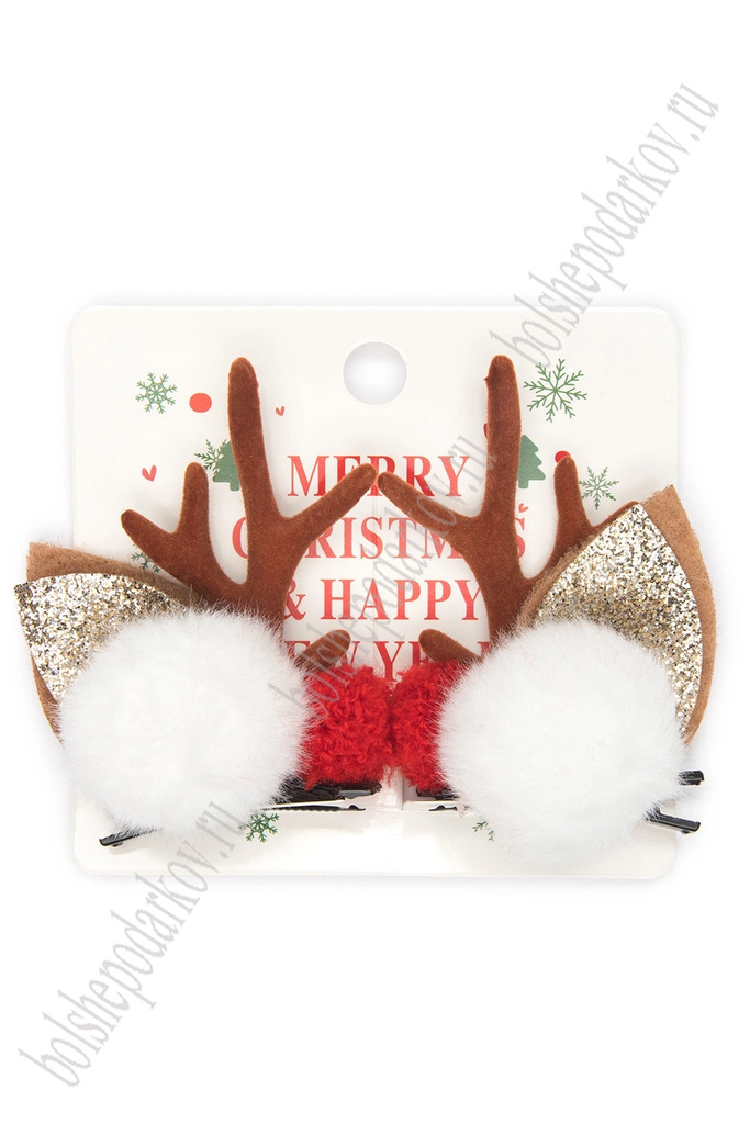 Новогодние заколки "Рожки" (1 пара) SF-7562, коричневый №16