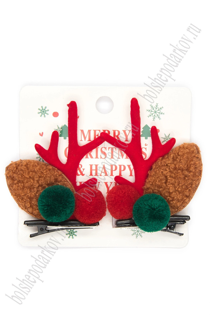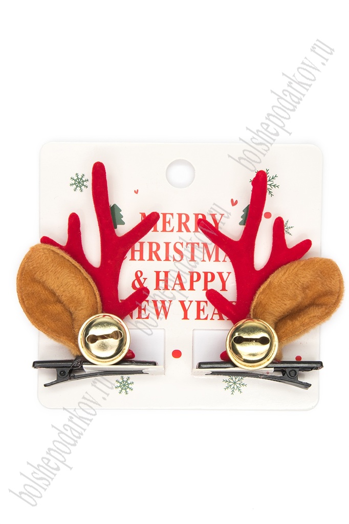 Новогодние заколки "Рожки" (1 пара) SF-7562, красный №15