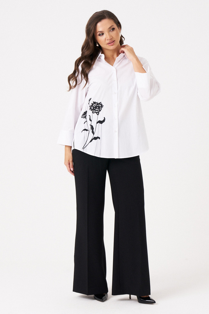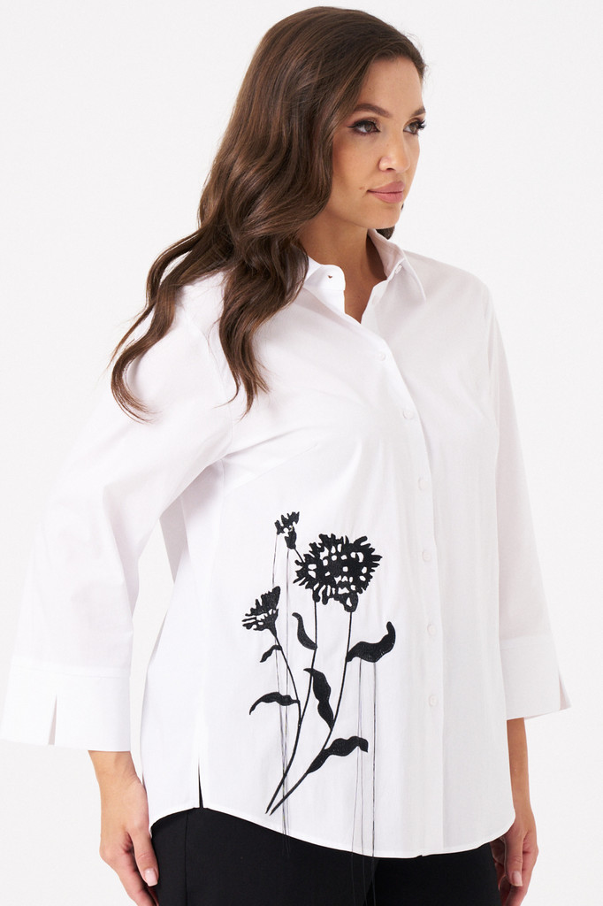 Описание Это женская блузка из смесовой ткани с высоким содержанием хлопка, обеспечивающей комфорт и приятные тактильные ощущения. Модель выполнена с центральной застежкой, закрепленной на обметанных ... Показать описаниепетлях и пуговицах, что придает ей классический и аккуратный вид. Перед украшен дизайнерской вышивкой в виде цветов, что добавляет изделию оригинальности и эстетической привлекательности. Перед имеет две нагрудные вытачки. Спинка с кокеткой и заложенными складками что делает данную блузку очень практичной и удобной. В боковых швах расположены небольшие разрезы, обеспечивающие свободу движений и удобство при носке. Горловина оформлена рубашечным воротником с отрезной стойкой, создавая структурированный и элегантный силуэт. Рукава втачные длинные, низ рукава обработан притачной манжетой, что делает дизайн завершенным и практичным. Эта блузка отлично подойдет для повседневных образов, сочетая комфорт, стиль и оригинальные декоративные элементы. Параметры Рост: 164 48 Блузка: Длина изделия - 71.5см, Длина переда от высшей плечевой точки до низа - 73см, Длина рукава - 51см, Обхват шеи - 47.5см, Ширина плеча - 14.5см, Ширина по груди - 55.5см, Ширина по низу - 61см, Ширина рукава - 21.5см; 50 Блузка: Длина изделия - 71.5см, Длина переда от высшей плечевой точки до низа - 73см, Длина рукава - 51см, Обхват шеи - 48.5см, Ширина плеча - 14.5см, Ширина по груди - 57.5см, Ширина по низу - 63см, Ширина рукава - 22.2см; 52 Блузка: Длина изделия - 72см, Длина переда от высшей плечевой точки до низа - 73.5см, Длина рукава - 51см, Обхват шеи - 49.5см, Ширина плеча - 14.8см, Ширина по груди - 59.5см, Ширина по низу - 65см, Ширина рукава - 23см; 54 Блузка: Длина изделия - 73см, Длина переда от высшей плечевой точки до низа - 74.5см, Длина рукава - 51см, Обхват шеи - 50.5см, Ширина плеча - 15см, Ширина по груди - 61.5см, Ширина по низу - 67см, Ширина рукава - 23.7см; 56 Блузка: Длина изделия - 73см, Длина переда от высшей плечевой точки до низа - 74.5см, Длина рукава - 52см, Обхват шеи - 51.5см, Ширина плеча - 15см, Ширина по груди - 63.5см, Ширина по низу - 69см, Ширина рукава - 24.5см; 58 Блузка: Длина изделия - 73.5см, Длина переда от высшей плечевой точки до низа - 75см, Длина рукава - 52см, Обхват шеи - 53см, Ширина плеча - 15.2см, Ширина по груди - 65.5см, Ширина по низу - 71см, Ширина рукава - 25.2см; Состав и уход Состав: Хлопок/cotton 69%; нейлон/nylon 30%; эластан/elastane 1%. Уход: * Стирка при температуре воды до 30°C * Не отбеливать * Гладить при температуре утюга до 110°C * Вертикальная сушка * Барабанная сушка запрещена * Профессиональная сухая чистка в тетрахлорэтилене и во всех растворителях, внесенных в список для символа F.