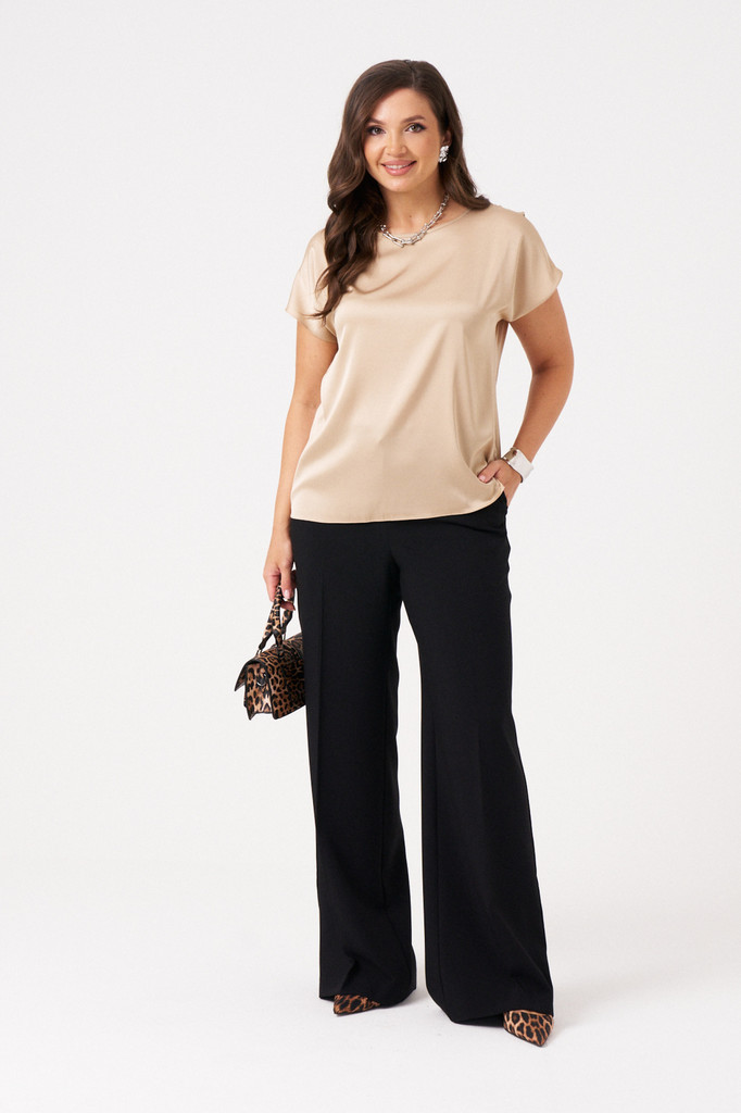 Описание Эта женская базовая блуза прямого силуэта бежевого оттенка — универсальный и стильный выбор для вашего гардероба. Она отлично сочетается с юбками, брюками и джинсами, создавая разнообразные о... Показать описаниебразы для повседневной носки. Легкая и комфортная, блуза выполнена из приятной на ощупь ткани с гладкой поверхностью, которая не парит даже в жаркую погоду. Свободный крой с опущенной линией плеча и короткими цельнокроеными рукавами обеспечивает безупречную посадку и комфорт. Обработанная узкой планкой горловина придает изделию аккуратный вид. Ее легко стирать в машинке, она быстро сохнет и сохраняет форму после стирки. Купите эту блузу и создавайте множество стильных образов для любого дня! Параметры Рост: 164 44 Блузка: Длина изделия - 59см, Ширина плеча - 21.5см, Ширина по груди - 50.5см, Ширина по низу - 54см, Ширина рукава - 19.5см; 46 Блузка: Длина изделия - 59.5см, Ширина плеча - 22см, Ширина по груди - 52.5см, Ширина по низу - 56см, Ширина рукава - 20см; 48 Блузка: Длина изделия - 59.5см, Ширина плеча - 22.5см, Ширина по груди - 54.5см, Ширина по низу - 58см, Ширина рукава - 20.7см; 50 Блузка: Длина изделия - 59.5см, Ширина плеча - 23см, Ширина по груди - 56.5см, Ширина по низу - 60см, Ширина рукава - 21.5см; 52 Блузка: Длина изделия - 60см, Ширина плеча - 23.5см, Ширина по груди - 58.5см, Ширина по низу - 62см, Ширина рукава - 22.2см; 54 Блузка: Длина изделия - 61см, Ширина плеча - 24см, Ширина по груди - 60.5см, Ширина по низу - 64см, Ширина рукава - 23см; 56 Блузка: Длина изделия - 61см, Ширина плеча - 24.5см, Ширина по груди - 62.5см, Ширина по низу - 66см, Ширина рукава - 23.7см; Состав и уход Состав: Полиэстер/ polyester 100% Уход: * Стирка при температуре воды до 30°C * Не отбеливать * Гладить при температуре утюга до 110°C * Вертикальная сушка * Барабанная сушка запрещена * Профессиональная сухая чистка в тетрахлорэтилене и во всех растворителях, внесенных в список для символа F.