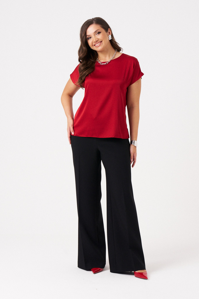 Описание Эта женская базовая блуза прямого силуэта чёрного оттенка — универсальный и стильный выбор для вашего гардероба. Она отлично сочетается с юбками, брюками и джинсами, создавая разнообразные об... Показать описаниеразы для повседневной носки. Легкая и комфортная, блуза выполнена из приятной на ощупь ткани с гладкой поверхностью, которая не парит даже в жаркую погоду. Свободный крой с опущенной линией плеча и короткими цельнокроеными рукавами обеспечивает безупречную посадку и комфорт. Обработанная узкой планкой горловина придает изделию аккуратный вид. Ее легко стирать в машинке, она быстро сохнет и сохраняет форму после стирки. Купите эту блузу и создавайте множество стильных образов для любого дня! Параметры Рост: 164 44 Блузка: Длина изделия - 59см, Ширина плеча - 21.5см, Ширина по груди - 50.5см, Ширина по низу - 54см, Ширина рукава - 19.5см; 46 Блузка: Длина изделия - 59.5см, Ширина плеча - 22см, Ширина по груди - 52.5см, Ширина по низу - 56см, Ширина рукава - 20см; 48 Блузка: Длина изделия - 59.5см, Ширина плеча - 22.5см, Ширина по груди - 54.5см, Ширина по низу - 58см, Ширина рукава - 20.7см; 50 Блузка: Длина изделия - 59.5см, Ширина плеча - 23см, Ширина по груди - 56.5см, Ширина по низу - 60см, Ширина рукава - 21.5см; 52 Блузка: Длина изделия - 60см, Ширина плеча - 23.5см, Ширина по груди - 58.5см, Ширина по низу - 62см, Ширина рукава - 22.2см; 54 Блузка: Длина изделия - 61см, Ширина плеча - 24см, Ширина по груди - 60.5см, Ширина по низу - 64см, Ширина рукава - 23см; 56 Блузка: Длина изделия - 61см, Ширина плеча - 24.5см, Ширина по груди - 62.5см, Ширина по низу - 66см, Ширина рукава - 23.7см; Состав и уход Состав: Полиэстер/ polyester 100% Уход: * Стирка при температуре воды до 30°C * Не отбеливать * Гладить при температуре утюга до 110°C * Вертикальная сушка * Барабанная сушка запрещена * Профессиональная сухая чистка в тетрахлорэтилене и во всех растворителях, внесенных в список для символа F.