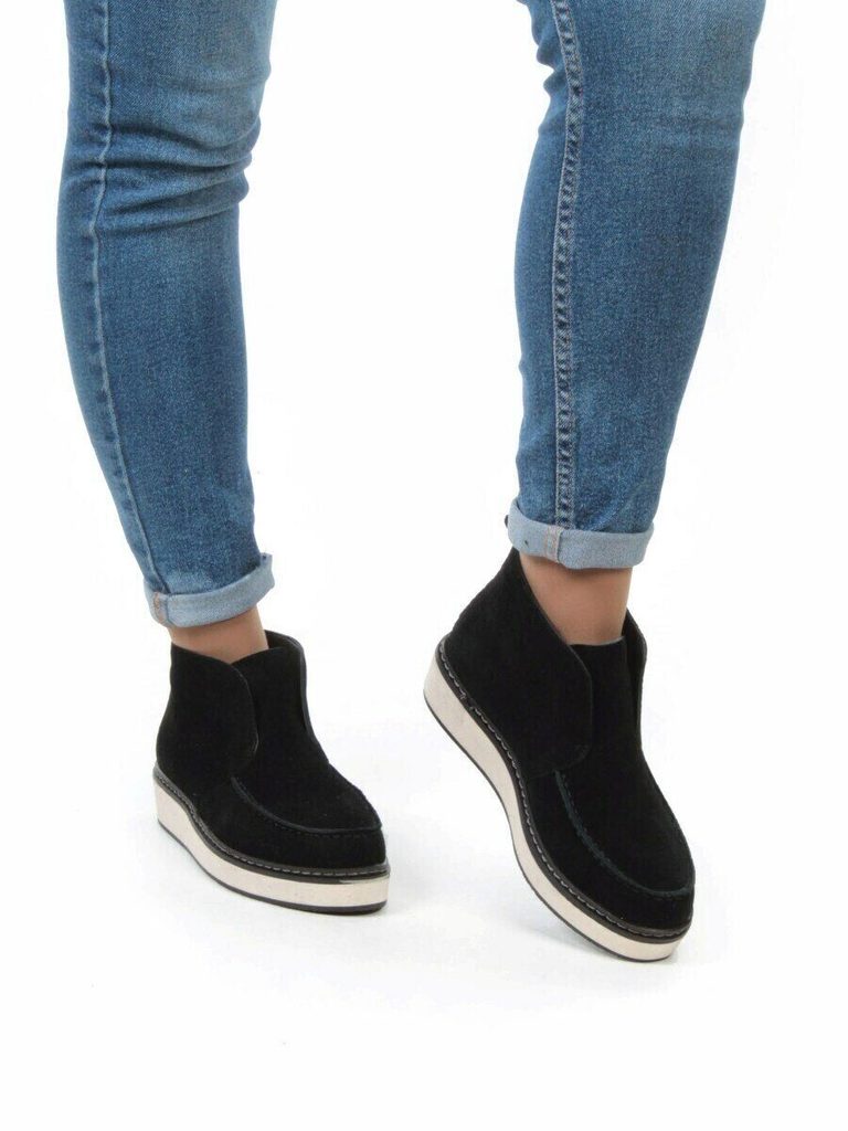 Ботинки демисезонные (натуральная замша, байка) Модель сезона: осень-весна Артикул: 01-5173-2 Основной материал: натуральная замша Вид кожи основного материала: бархатистая Каблук: танкетка. Высота к... Показать описаниеаблука: 3,5 см. Толщина подошвы: 2,5 см. Материал подошвы: резиновая. Вид подошвы: стандартная. Способ соединения подошвы: клееная, прошитая . Подкладка: байка. Стелька: байка. Застежка: нет. Тип мыска: закрытый Тип задника: закрытый Дополнительная информация: Витринный образец 39-го размера. Высота обуви по центру: 14,0 см Объем щиколотки: 33,0 см Ширина подошвы: 9,5 см Длина стельки: 25,0 см. Модель идет размер в размер! Длина стельки каждого отдельно взятого размера: 36 длина стельки 23,0 см. 37 длина стельки 23,5 см. 38 длина стельки 24,5 см. 39 длина стельки 25,0 см. 40 длина стельки 25,5 см. 41 длина стельки 26,5 см. Цвет: Черный.