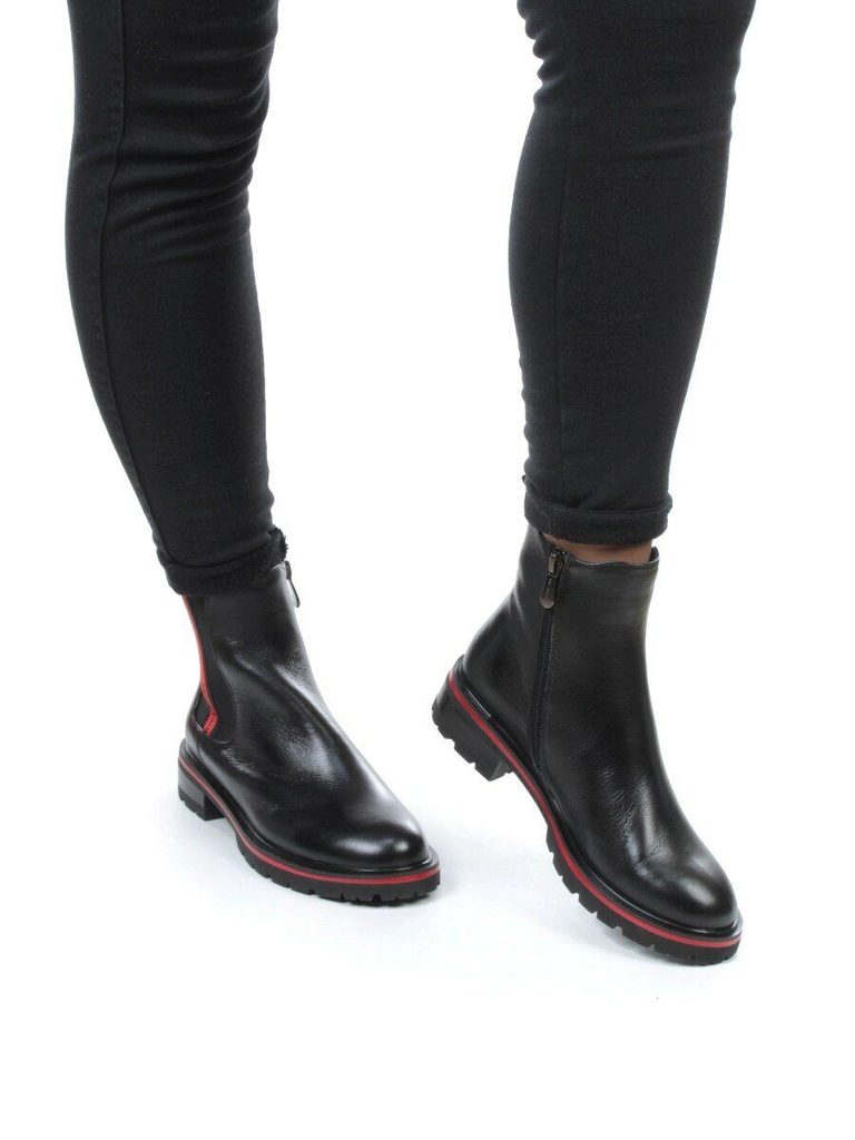 Ботинки демисезонные женские (натуральная кожа, байка) Артикул: 5572-1 BLACK Основной материал: натуральная кожа. Вид кожи основного материала: гладкая. Каблук: стандартный. Высота каблука: 4,0 с... Показать описанием. Материал каблука: пластиковый с резиновой набойкой. Толщина подошвы: 1,0 см. Материал подошвы: резиновая. Вид подошвы: стандартная. Способ соединения подошвы: клееная, прошитая . Подкладка: байка. Стелька: байка. Застежка: нет. Тип мыска: закрытый Тип задника: закрытый Дополнительная информация: Витринный образец 39-го размера. Высота обуви по центру: 17,5 см Объем щиколотки: 31,5 см. Длина стельки: 24,5 см. Модель маломерит на один размер! Длина стельки каждого отдельно взятого размера: 36 длина стельки 22,5 см. 37 длина стельки 23,0 см. 38 длина стельки 23,5 см. 39 длина стельки 24,5 см. 40 длина стельки 25,0 см. 41 длина стельки 25,5 см. Цвет: Черный.