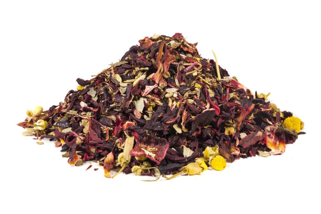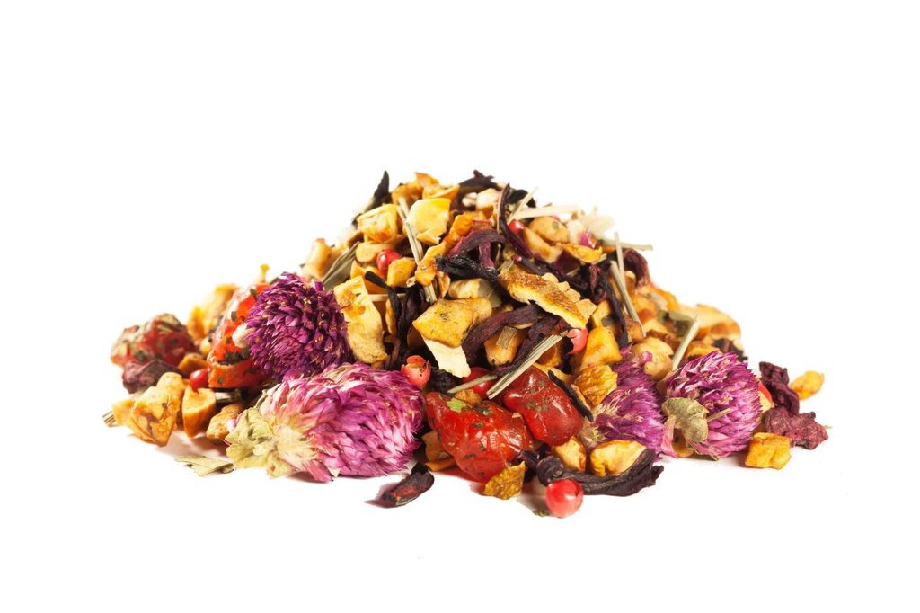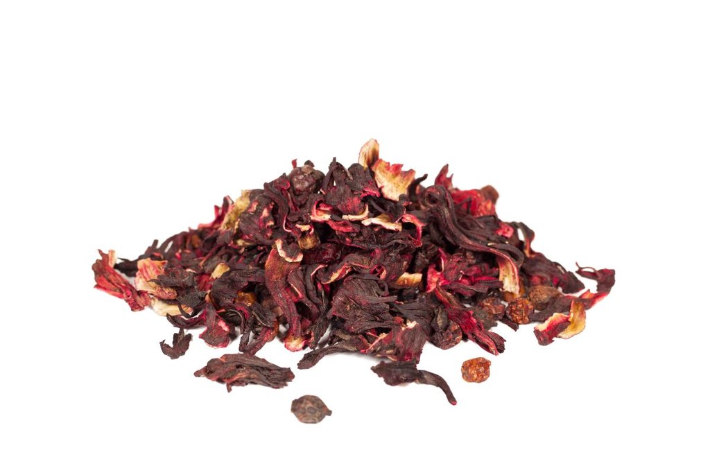 Полезный и освежающий чайный напиток на основе гибискуса с добавлением клюквы, боярышника и красной рябины. Обладает нежным вишнёвым ароматом. Можно пить горячим и охлаждённым, добавлять сахар или мёд... Показать описание по вкусу. Состав: бутоны гибискуса, ягоды боярышника и рябины красной, клюква резаная, ароматизатор.
