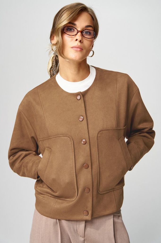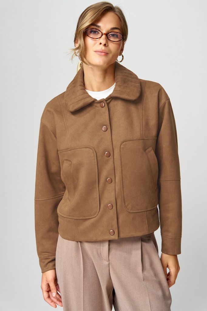 Состав: ПЭ-88%; Спандекс-12%; Жакет из экозамши от LAIKONY свободного силуэта на подкладке. Застежка центральная на кнопки. Воротник отложной пиджачного типа. Детали переда с кокетками,  отрезным... Показать описаниеи бочками и талиевыми ватачками. В центральных частях переда горизонтальные подрезы, в шве которых расположены прорезные карманы  с листочками и клапаном.  Спинка жакета с плечевыми вытачками и средним швом. Спинка жакета с кокеткой, нижняя часть со средним швом, который заканчивается шлицей, рельефными швами и горизонтальным подрезом. Рукава длинные втачные двухшовные. Жакет на подкладке. Жакет выполнен из мягкой экозамши. Декор может отличаться от представленного на фотографии. Длина изделия по спинке 68-71 см в зависимости от размера, длина рукава  61,5 см. Наш отличный жакет заменит вам куртку теплой солнечной осенью и весной.