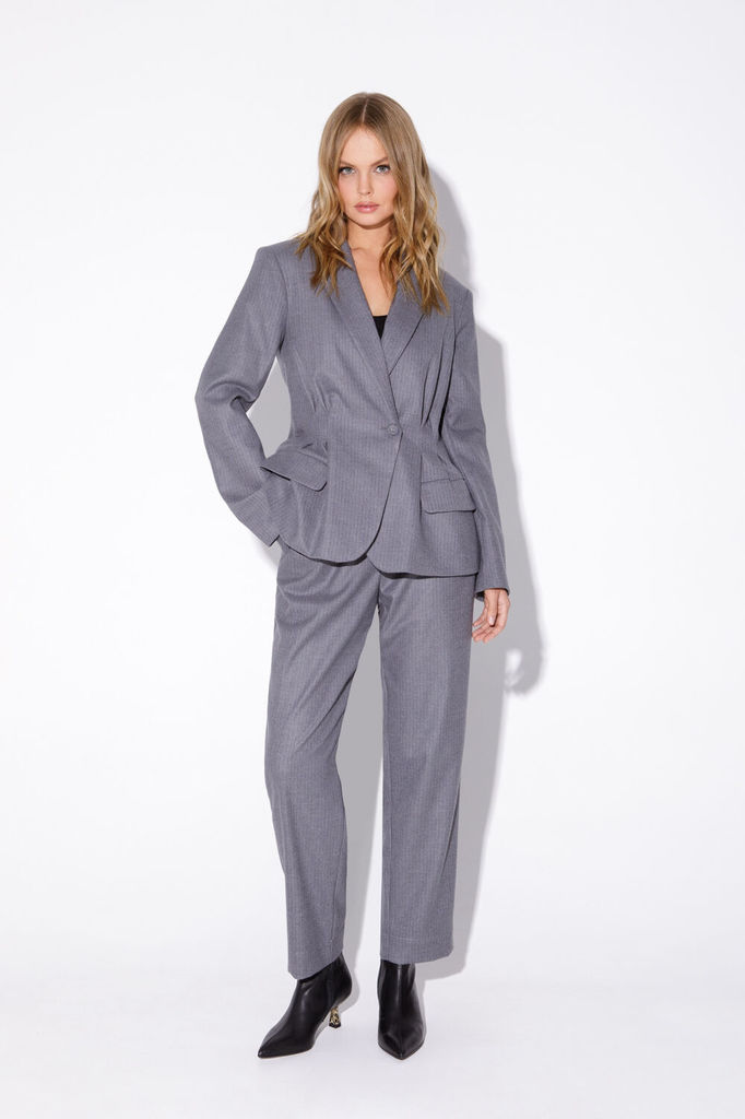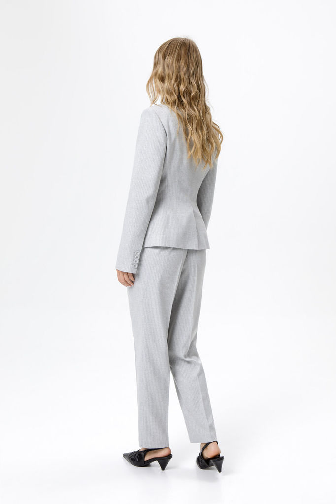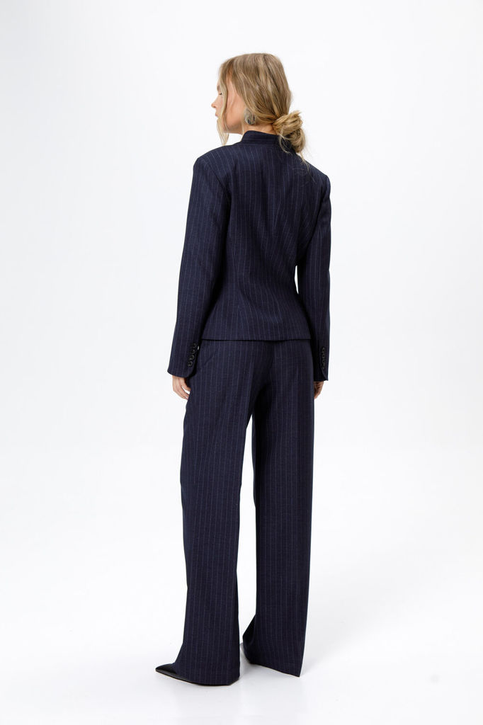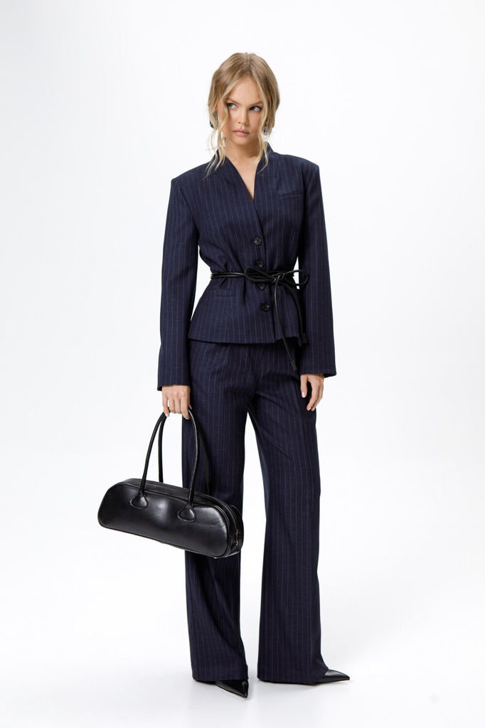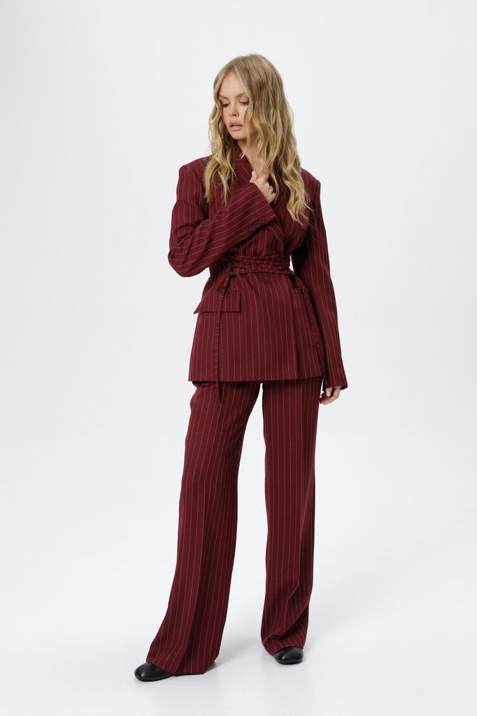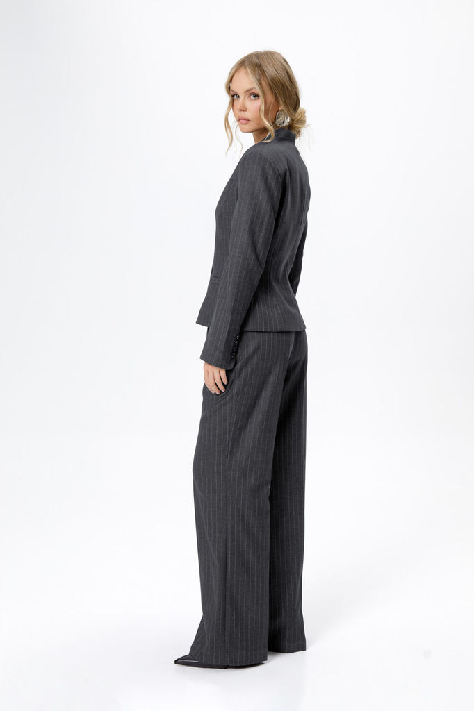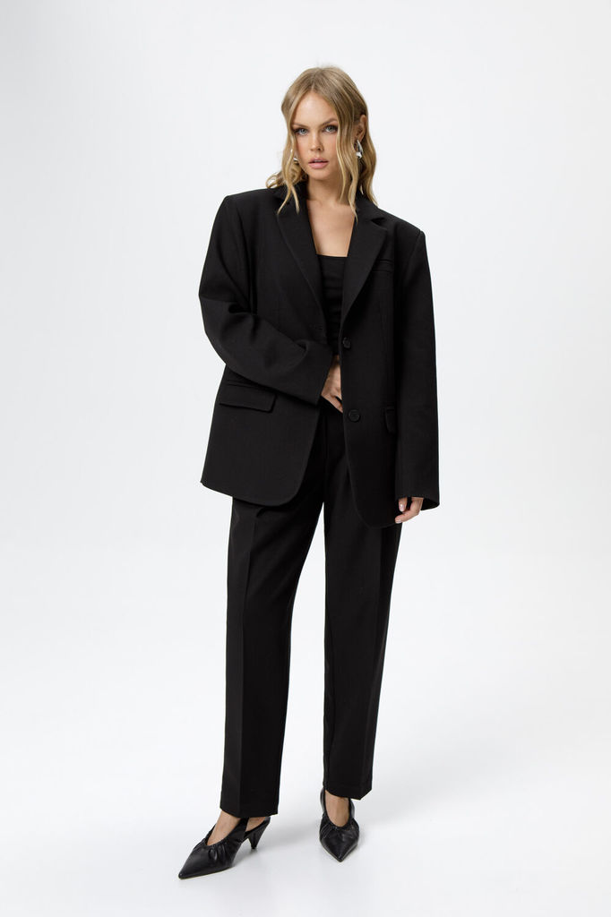 Состав: Жакет: Вискоза-28%; ПЭ-67%; Спандекс-5%; Подкладка: Вискоза-45%; ПЭ-55%; Оверсайз жакет из костюмной ткани в рубчик.