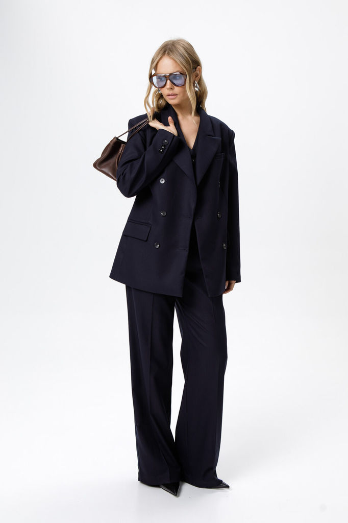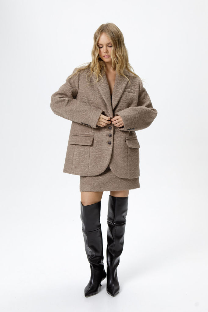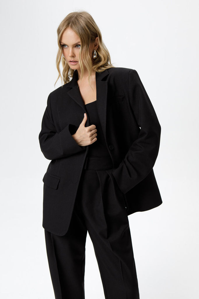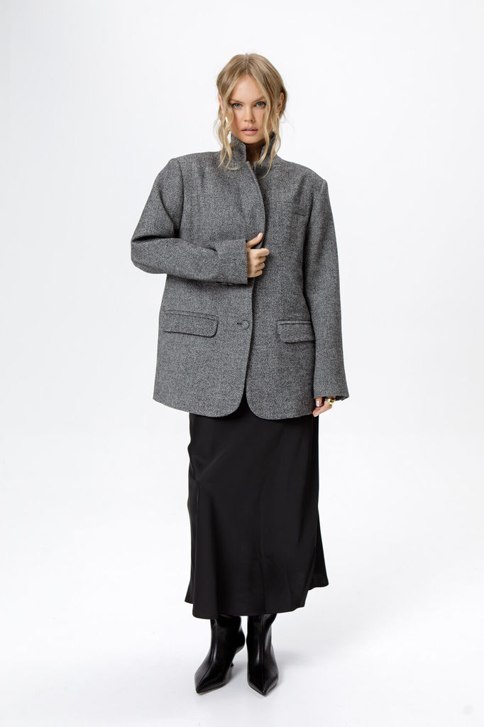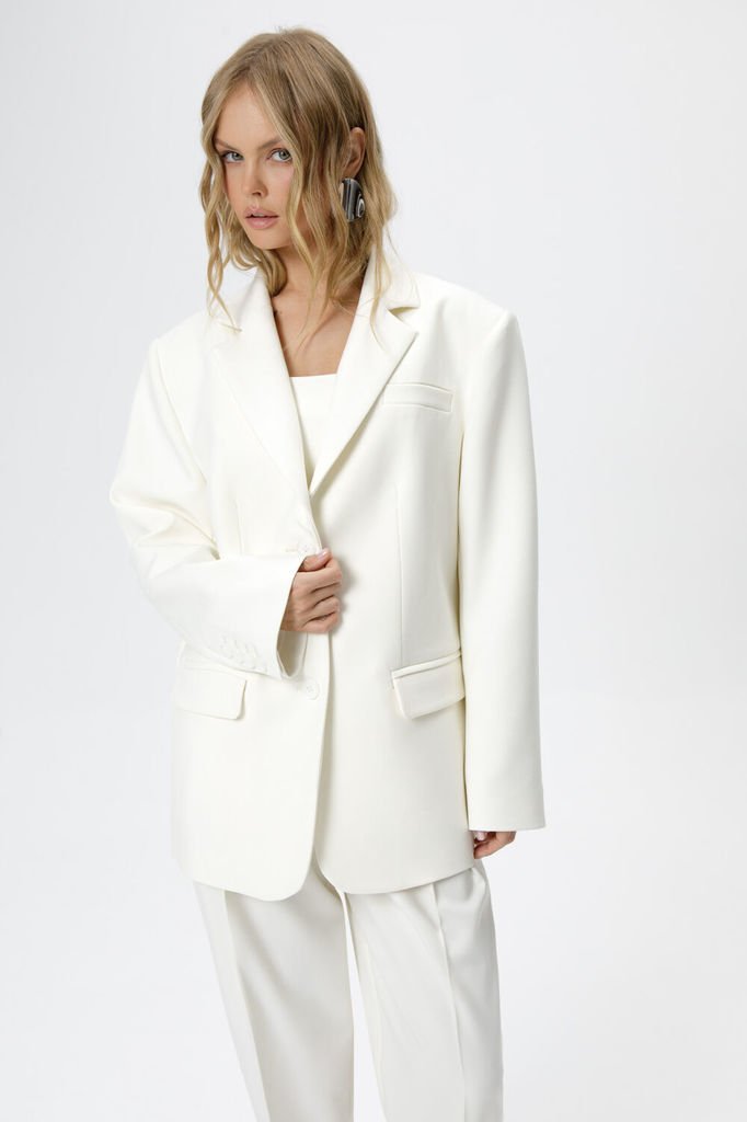 Состав: Жакет: ПЭ-100%; Подкладка: Вискоза-45%; ПЭ-55%; Оверсайз жакет.