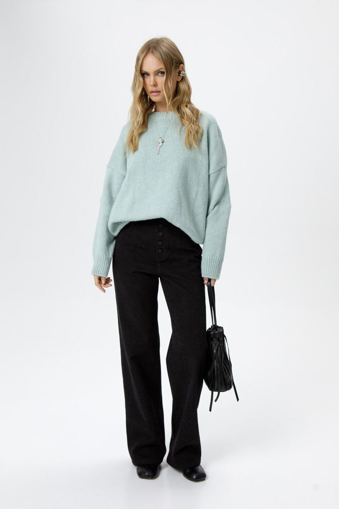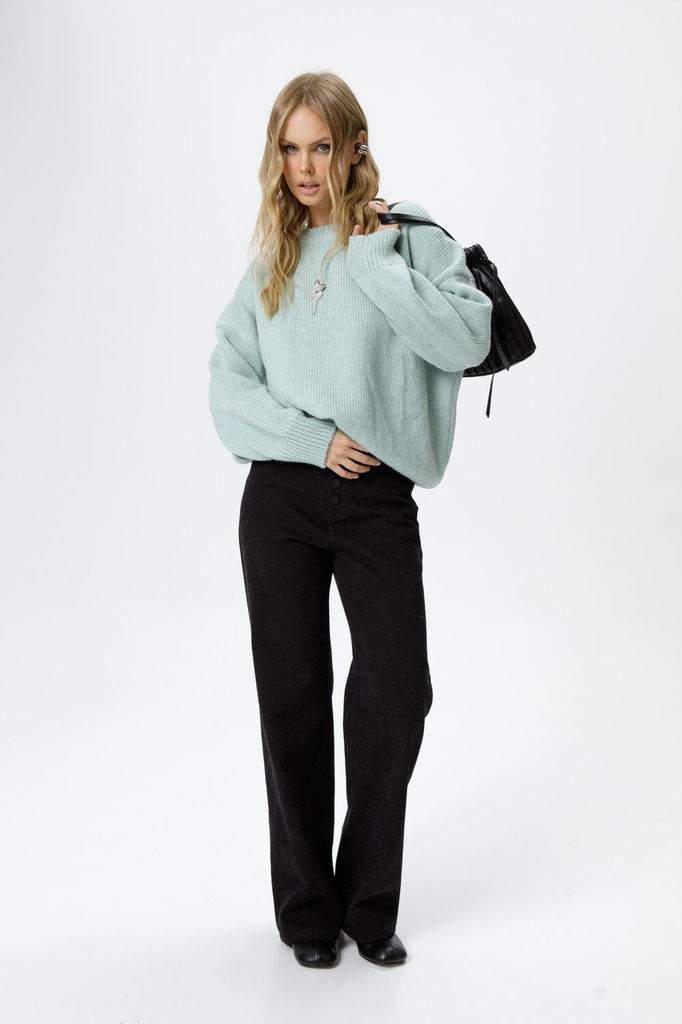 Состав: Вискоза-37%; ПЭ-58%; Спандекс-5%; Облегающий джемпер с декоративным лифом.