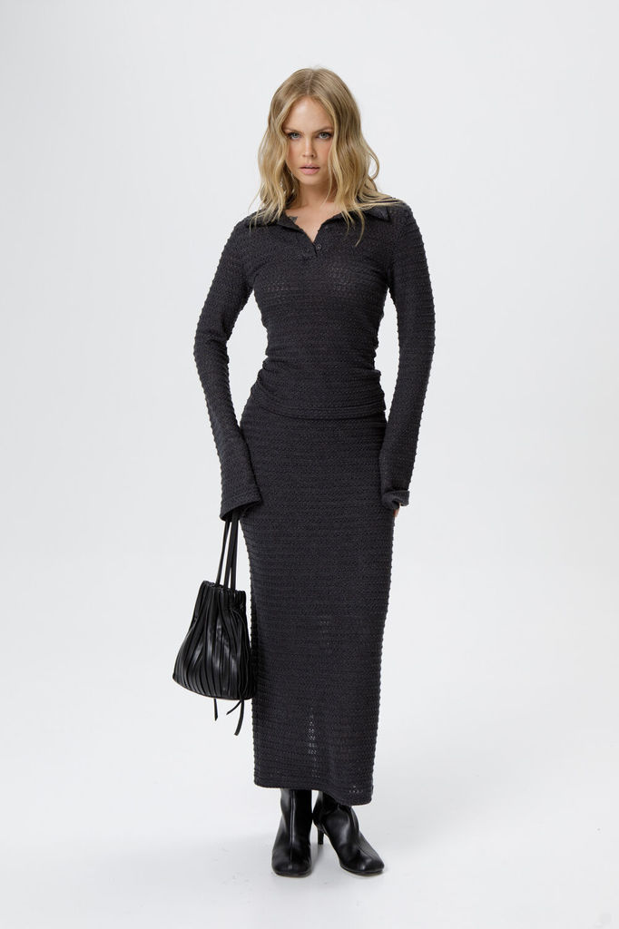 Состав: Вискоза-50%; ПЭ-30%; ПА-20%; Джемпер из ажурного трикотажа и воротником-поло. Детали: прилегающий силуэт, воротник с застежкой-поло, длинные расширенные к низу рукава.