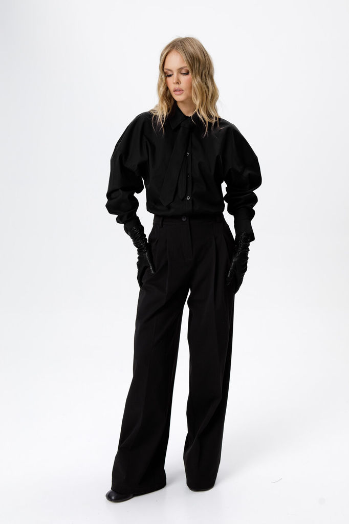 Состав: Вискоза-80%; ПЭ-10%; Шерсть-10%; Блуза с воротником-бантом. Детали: прямой силуэт, нагрудные вытачки, рукава длинные объемные со сборкой и высокими притачными манжетами с застежкой на навесные... Показать описание петли и декоративные пуговицы, блуза без застежки. Длина по спинке около 59,5 см в размерах 40-46 и около 61,5 см в размерах 48-52, длина рукава около 63 см