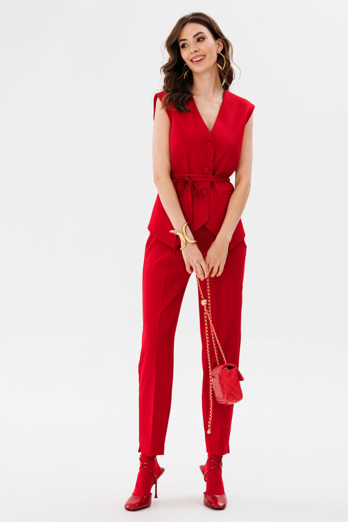 Состав: ПЭ-96%; ПУ-4%; Брюки выполнены из однотонной костюмной ткани, заужены к низу, на задних половинках карманы с листочкой, застежка в боковом шве на металлическую молнию и пуговицу. По низу в бок... Показать описаниеовом шве разрезы. Длина брюк р.44-54: с поясом - 100 см, без пояса - 98 см. Гарантийный срок не установлен. ГОСТ 25295-2003 Замеры 44-54: Длина по боковому шву 100 100 100 101,5 101,5 101,5 Объем по талии 72 76 80 84 88 92 Объем по бедрам 94 98 102 106 110 114 Объем по голени 38 40 42 44 46 48 Ширина пояса 3 3 3 3 3 3