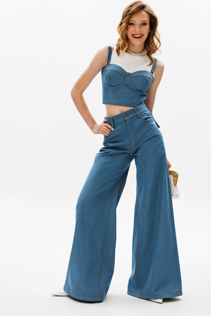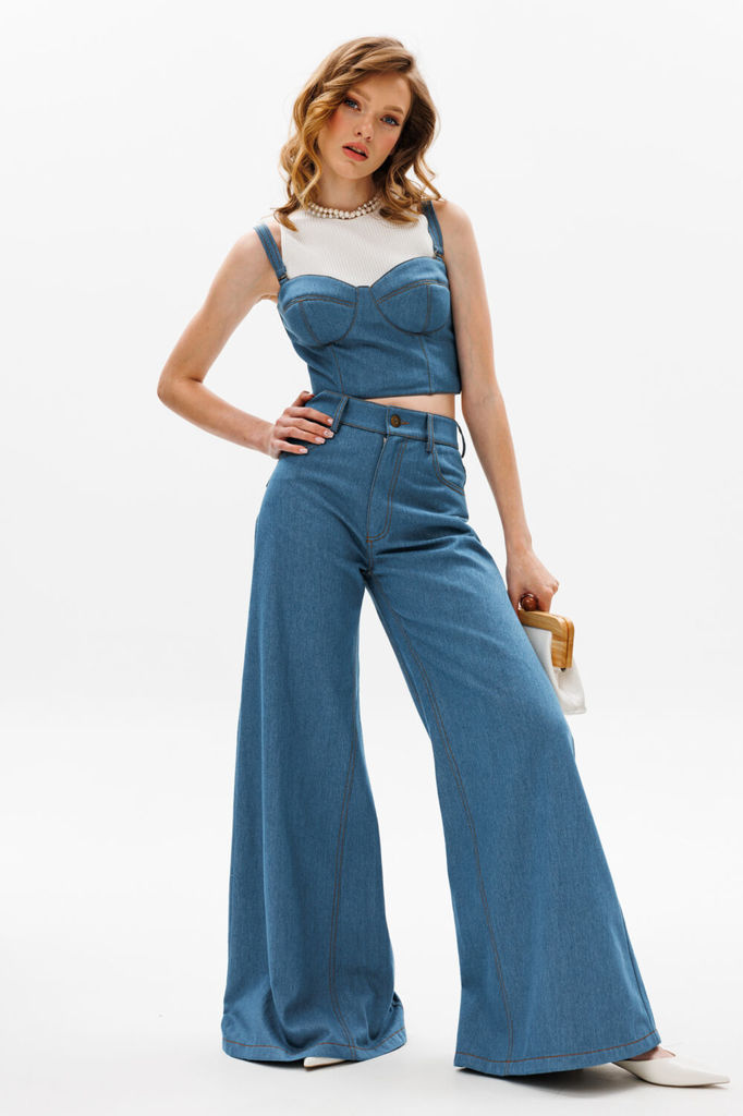 Состав: Хлопок-100%; Брюки выполнены из джинса. Брюки покроя "клеш", на притачном поясе, длиной "в пол". Застежка спереди на молнию с гульфиком и пуговицу. Спереди боковые карманы с фигурным входом.&... Показать описаниеnbsp; Сзади кокетки и декоративные клапаны. В области шагового шва клин, расширяющийся к низу. Брюки декорированы нашивками спереди и сзади по поясу. Длина брюк с поясом - 117,5 см. Гарантийный срок не установлен ГОСТ 25294 - 2003 Размерный ряд 44 46 48 Длина по боковому шву 117,5 117,5 117,5 Объем по талии 72 76 80 Объем по бедрам 100 104 108 Объем по голени 72 73 74 Ширина пояса 4,5 4,5 4,5