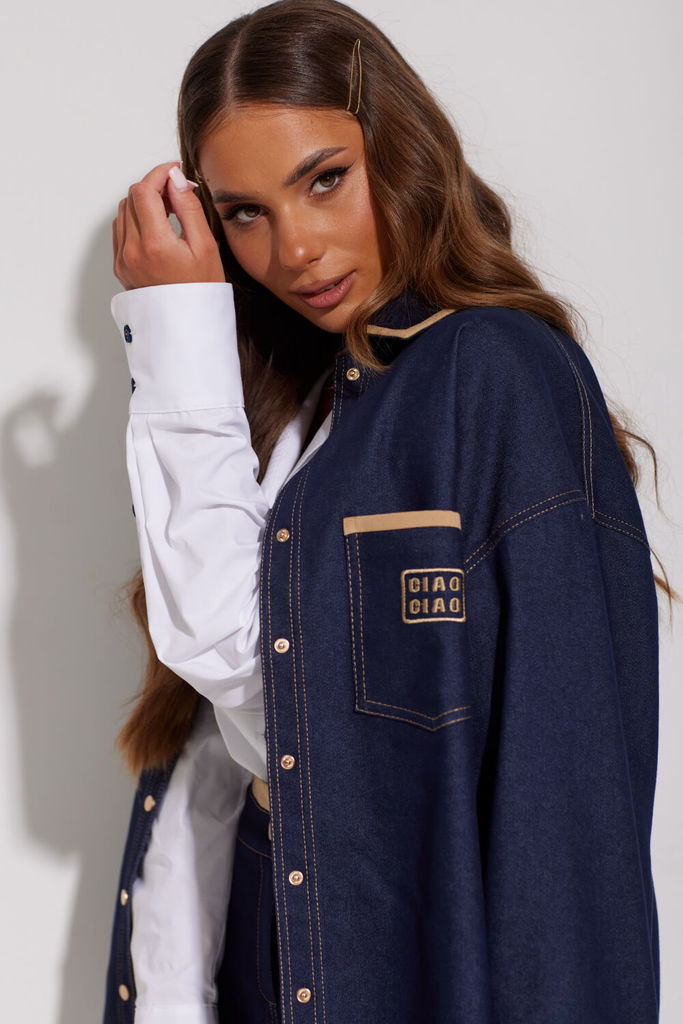 Состав: ПЭ-37%; Хлопок-60%; Эластан-3%; Жакет мягкой формы из ткани «джинс». Застежка по переду на кнопки. Воротник рубашечный. На переде накладной карман с вышивкой. Линия плеча расширена. Рукав руба... Показать описаниешечный с манжетой понизу. Манжета регулируется по ширине кнопками. По воротнику, карману и низу манжет отделка контрастного цвета. Длина 68 см. Длина рукава 75 см. Измерения по готовому изделию: 44 р-р: ОГ - 122 см., ОТ - 114 см., ОБ - 114 см. 46 р-р: ОГ - 126 см., ОТ - 118 см., ОБ - 118 см. 48 р-р: ОГ - 130 см., ОТ - 122 см., ОБ - 122 см. 50 р-р: ОГ - 134 см., ОТ - 126 см., ОБ - 126 см. 52 р-р: ОГ - 138 см., ОТ - 130 см., ОБ - 130 см.