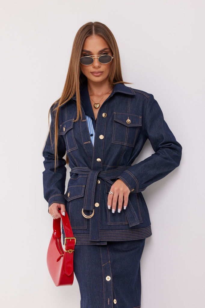 Состав: ПЭ-37%; Хлопок-60%; Эластан-3%; Джинсовый жакет полуприлегающего силуэта со сьемным поясам. Застежка на пели и пуговицы. По переду функциональные накладные карманы с клапанами. Рукав двухшовны... Показать описанией с манжетой. Воротник отложной. Длина жакета 67 см. Длина рукава 61 см. Измерения по готовому изделию: 44 р-р: ОГ - 95 см., ОТ - 90 см., ОБ - 102 см. 46 р-р: ОГ - 99 см., ОТ - 94 см., ОБ - 106 см. 48 р-р: ОГ - 103 см., ОТ - 98 см., ОБ - 110 см. 50 р-р: ОГ - 107 см., ОТ - 102 см., ОБ - 114 см. 52 р-р: ОГ - 111 см., ОТ - 106 см., ОБ - 118 см.