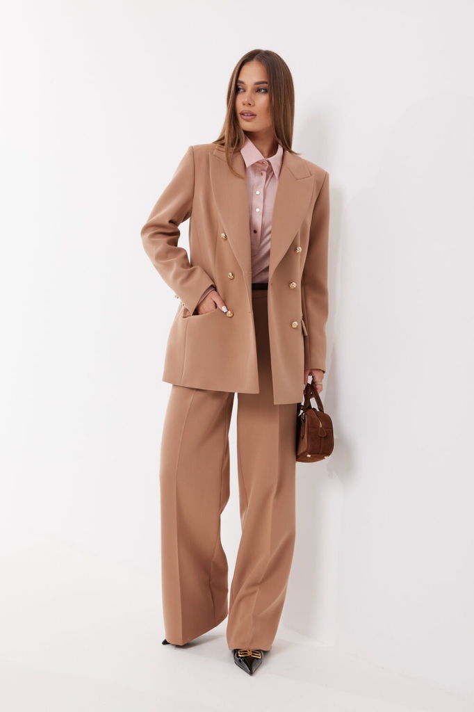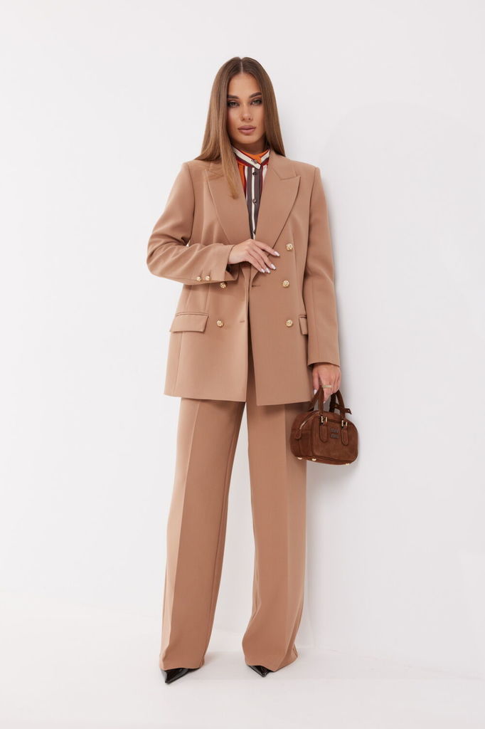 Состав: Вискоза-32%; ПЭ-65%; Спандекс-3%; Жакет женский, двубортный, полуприлегающего силуэта, на подкладке. Застежка на пели и пуговицы, Рукава двухшовные, шлицы в локтевом шве укра... Показать описаниешены пуговицами. Воротник и лацкан отложные. По переду функциональные карманы в рамку с клапанами. В рельефах спинки шлицы, обеспечивающие свободу движений при застегнутом жакете. Длина жакета 70 см. Длина рукава 61 см. Измерения по готовому изделию: 44 р-р: ОГ - 96 см., ОТ - 86 см., ОБ - 104 см. 46 р-р: ОГ - 100 см., ОТ - 90 см., ОБ - 108 см. 48 р-р: ОГ - 104 см., ОТ - 94 см., ОБ - 112 см. 50 р-р: ОГ - 108 см., ОТ - 98 см., ОБ - 116 см. 52 р-р: ОГ - 112 см., ОТ - 102 см., ОБ - 120 см.