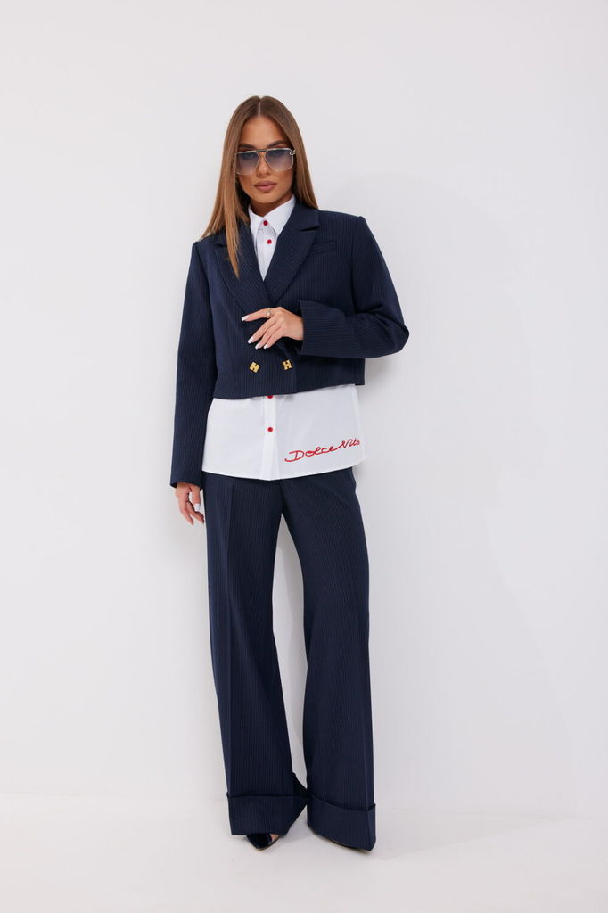 Состав: Вискоза-32%; ПЭ-65%; Спандекс-3%; Жакет укороченный прямого силуэта на подкладке. Застежка на петли и пуговицы. Рукав прямой, одношовный с манжетой украшенной декоративными пуговицами. Воротни... Показать описаниек отложной. По переду нагрудные вытачки. Длина жакета 44-48 р-р 51 см. 50-52 р-р 53 см. Длина рукава 61 см. Измерения по готовому изделию: 44 р-р: ОГ - 96 см., ОБ - 102 см. 46 р-р: ОГ - 100 см., ОБ - 106 см. 48 р-р: ОГ - 104 см., ОБ - 110 см. 50 р-р: ОГ - 108 см., ОБ - 114 см. 52 р-р: ОГ - 112 см., ОБ - 118 см.