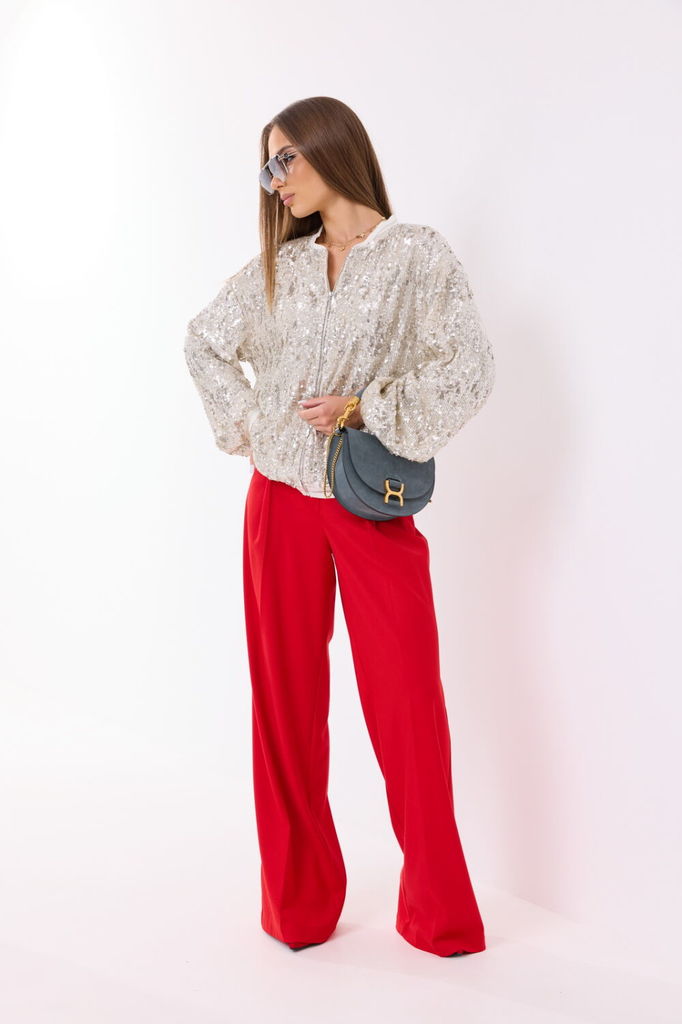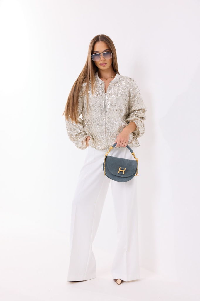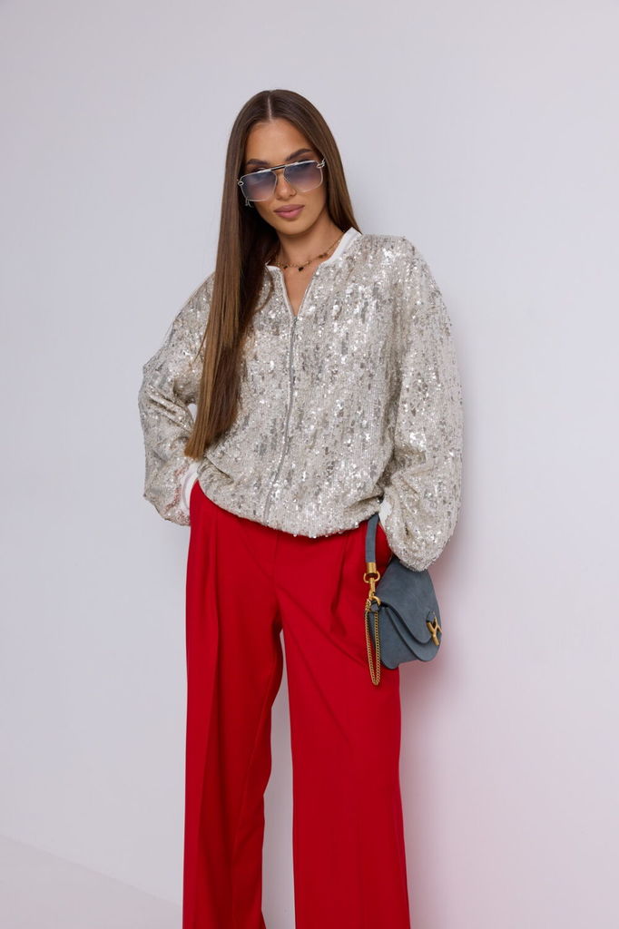 Состав: ПЭ-98%; Спандекс-2%; Жакет мягкой формы из ткани с пайетками. Застёжка по переду на разъёмную молнию. Воротник трикотажная стойка. Расширенная линия плеча. Рукав прямой на трикотажной ма... Показать описаниенжете. Низ жакета на трикотажном поясе. Жакет на подкладке. Длина жакета 60 см. Длина рукава 74 см. Измерения по готовому изделию: 44 р-р: ОГ - 108 см., ОТ - 106 см., ОБ - 79 см (ширина изделия по трик-му поясу в нерастянутом виде) 46 р-р: ОГ - 112 см., ОТ - 110 см., ОБ - 83 см. (ширина изделия по трик-му поясу в нерастянутом виде) 48 р-р: ОГ - 116 см., ОТ - 114 см., ОБ - 87 см. (ширина изделия по трик-му поясу в нерастянутом виде) 50 р-р: ОГ - 120 см., ОТ - 118 см., ОБ - 91 см. (ширина изделия по трик-му поясу в нерастянутом виде) 52 р-р: ОГ - 124 см., ОТ - 122 см., ОБ - 95 см. (ширина изделия по трик-му поясу в нерастянутом виде)