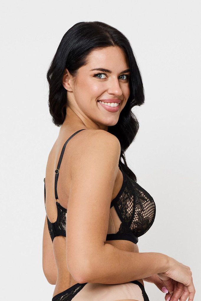 Бюстгальтер BELINDA BLACK от европейского производителя Subtille. Выполнен из кружева и тонкой микросетки. Мягкая чашка на кости в конструкции S-04 (balconette открытый, трех составной). Несъемные рег... Показать описаниеулируемые бретели. Золотые аксессуары.