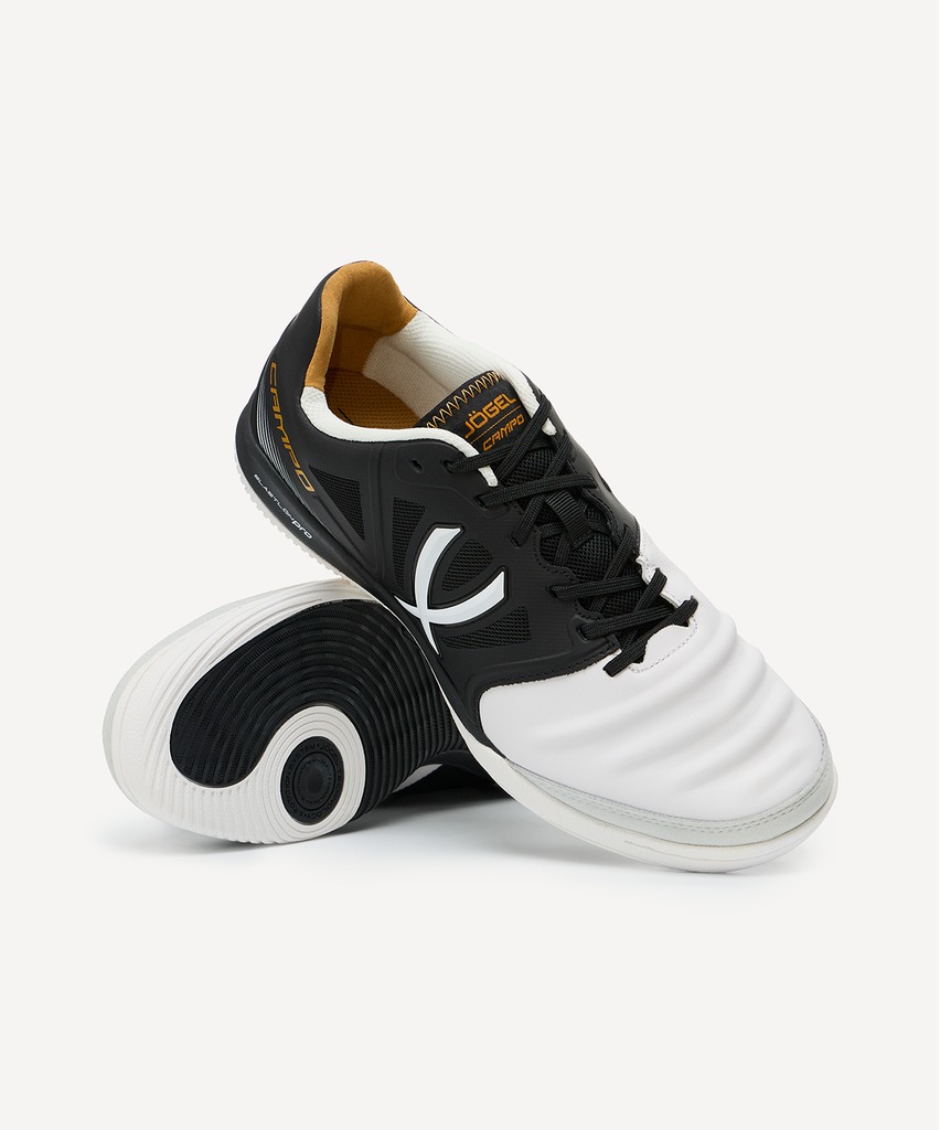 Улучшенная технологичная версия! Бутсы зальные CAMPO 2.0 от JOGEL разработаны с учетом всех потребностей профессиональных спортсменов и любителей. CAMPO 2.0 – это сочетание легкости, комфорта и надежн... Показать описаниеости с ярким дизайном. Конструкция обеспечивает устойчивое положение стопы, вырезы разной формы на боковых частях обуви отвечают за циркуляцию воздуха. Комбинация натуральной кожи и износостойкой микрофибры гарантирует комфорт и защиту стопы в передней части бутс. Волнообразный дизайн в области мыска позволяет лучше контролировать мяч в игровых ситуациях. Верх бутс выполнен из термопластичного полиуретана и сетки. Такое сочетание обеспечивает лучшую вентиляцию и легкость спортивной обуви для тренировок. Подошва, состоящая из Elastlon PRO в промежуточной части, улучшает гибкость и амортизацию, а резиновая подметка со сложным рисунком протектора разработана специально для лучшего сцепления с поверхностью игрового поля. Текстильная подкладка футзальных бутс отличается высокой износостойкостью и приятна на ощупь. CAMPO 2.0 позволяют оставаться максимально результативным на поле во время тренировок и игр! Для производства спортивной обуви JOGEL используются только качественные материалы, изделия легко моются и не требуют дополнительного ухода. Сила внутри! А еще внутри каждой коробки вы найдете стильные стикеры с изображениями командных видов спорта и логотипом JOGEL. Их можно наклеить на любую ровную и гладкую поверхность, добавив индивидуальности своим аксессуарам. Преимущества: Надежная фиксация и поддержка стопы;. Натуральная кожа для дополнительного комфорта в передней зоне;. Износостойкая микрофибра в носочной части;. Комбинированный верх для вентиляции и легкости;. Волнообразный дизайн мыска для лучшего контроля мяча;. Промежуточная подошва из Elastlon PRO для гибкости и отменной амортизации;. Подметка из резины non-marking для надежного сцепления обуви с поверхностью;. Приятная на ощупь подкладка с высокой износостойкостью. Материал верха: натуральная кожа, термополиуретан, текстиль, микрофибра. Материал подкладки обуви: текстиль. Материал подошвы обуви: эластлон про, резина. Материал стельки: этиленвинилацетат, текстиль. Полнота обуви: Е. Размерный ряд: 36-45 (RU). Основной цвет: белый. Дополнительные цвета: золотой. Вид застежки: шнурки. Назначение обуви: спорт, футзал. Комплектация: бутсы, коробка. Вес пары, г: 400. Тип упаковки: коробка со стикером. Страна производства: Китай. Единица измерения: пар. Подробное описание: https://old.prime-sport.ru/catalog/obuv-optom/butsy-zalnye/2131667/ Подробное описание: https://old.prime-sport.ru/catalog/obuv-optom/butsy-zalnye/2131667/