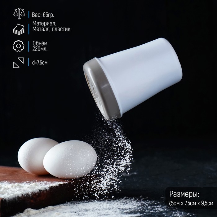 Диспенсер для сахарной пудры Доляна, 220 мл, 7.5?9.5 см, белыйВопросы по товару