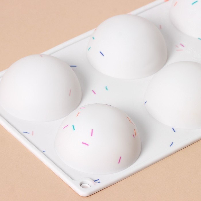 Форма для выпечки KONFINETTA «Фигуры. Полусфера», силикон, 27.8?16.3?3.4 см, 6 ячеек (d=6.7 см), белаяВопросы по товару