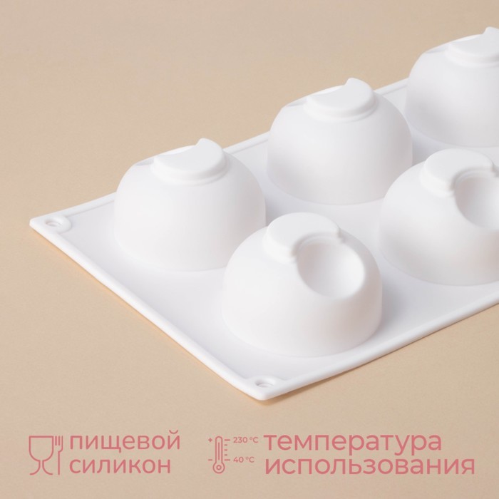 Форма для муссовых десертов и выпечки KONFINETTA «Купол», силикон, 30?17.5?4 см, 6 ячеек (d=7.5 см), белаяВопросы по товару