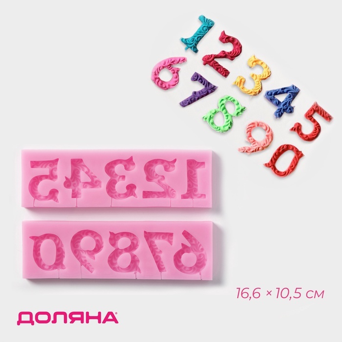 Молд для заливки шоколада «Цифры с узором», 2 шт., силикон, 16.6?10.5 см, розовыйВопросы по товару
