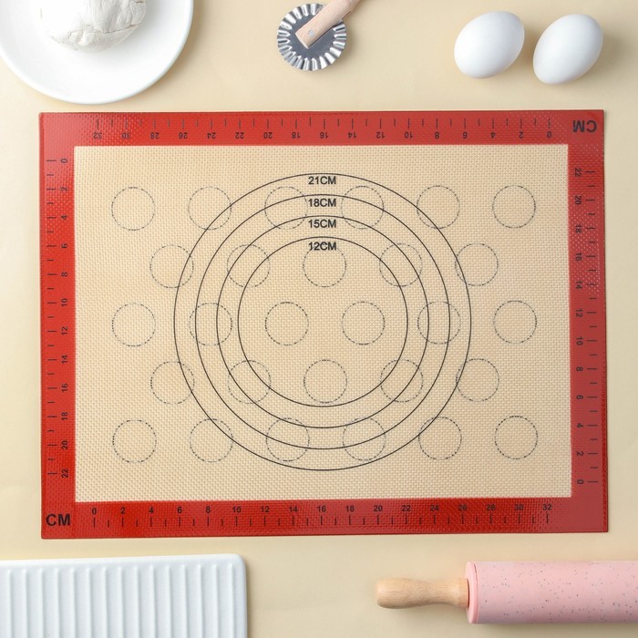 Коврик для выпечки и раскатки теста с разметкой «Пекарь», армированный, двусторонний, силикон, 30?40 см, бежевыйВопросы по товару