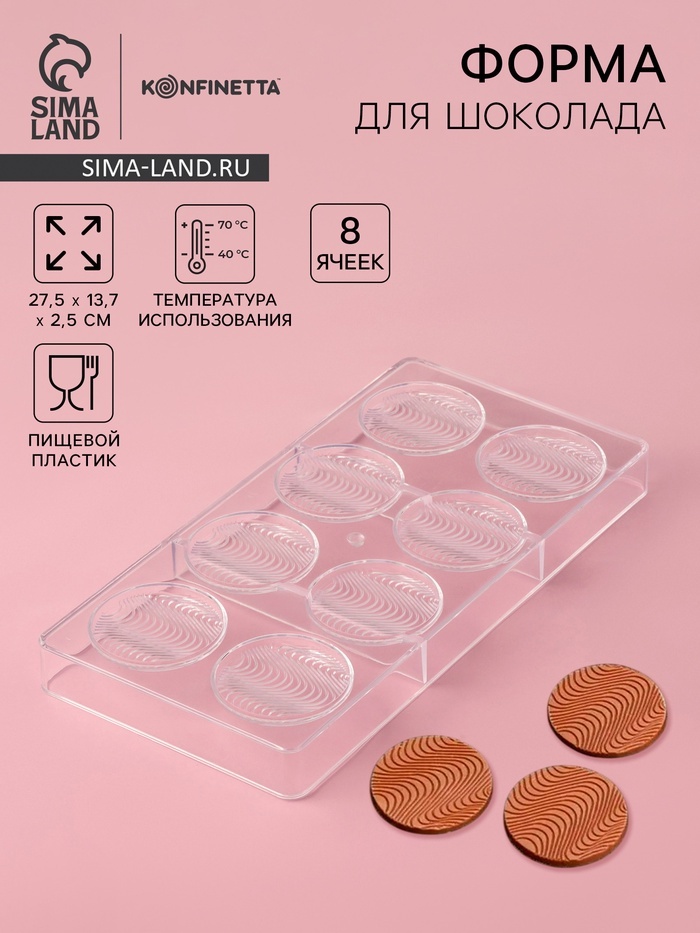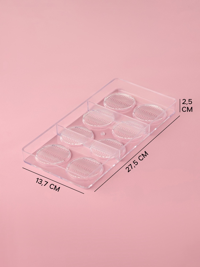 Форма для шоколада KONFINETTA «Круг», 27.5?13.7?2.5, 8 ячеек (d=5.5 см), прозрачнаяВопросы по товару