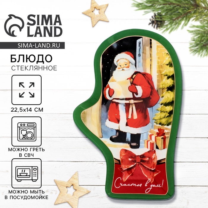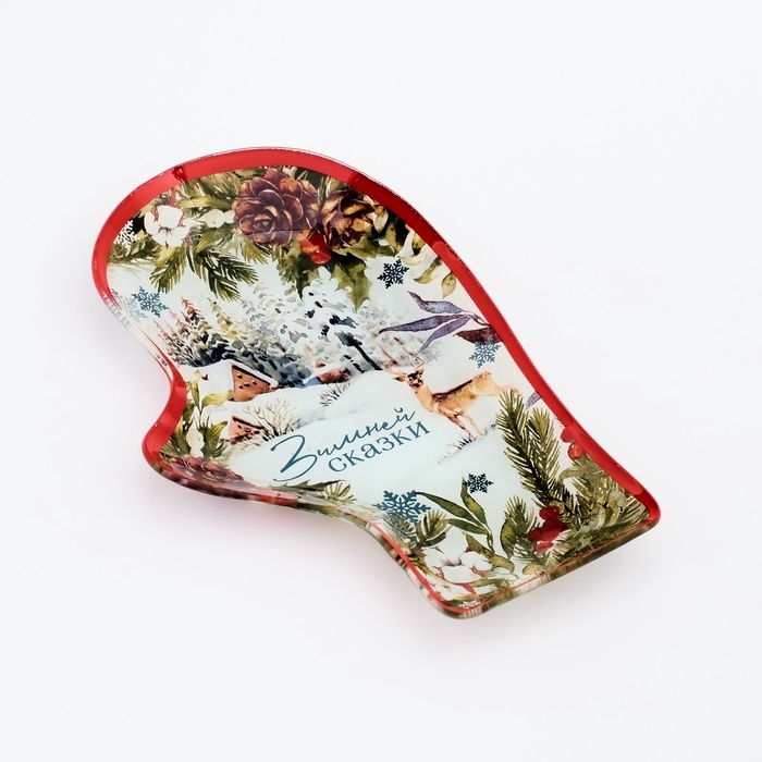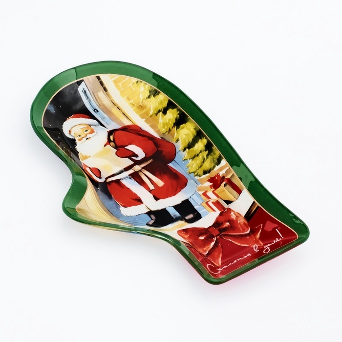 Стеклянное блюдо в виде рукавицы имеет размеры 22,5 ? 14 ? 2 см. Преимущества этого блюда: * Оригинальный дизайн: блюдо украшено новогодними мотивами в виде рукавицы, что делает его стильным и привлек... Показать описаниеательным. * Насыщенные цвета: яркие краски поднимают настроение и создают атмосферу праздника. * Устойчивость к запахам: благодаря этому качеству блюдо долго сохраняет свежесть продуктов. * Гладкая поверхность: легко моется и не впитывает загрязнения. * Подходит для подачи закусок, салатов, десертов и фруктов. * Изготовлено из высококачественного стекла, устойчивого к механическим воздействиям.